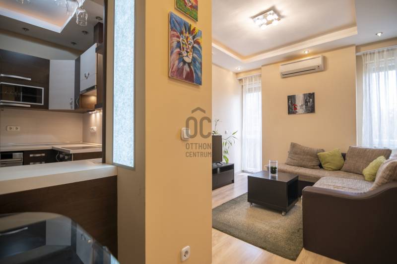 Az első lakásvásárlók számára ideális lehetőséget kínálunk Önnek Budapest 13. kerületének szívében, Angyalföldön. Ez a 39 nm-es, 2 szobás, jó állapotú lakás tökéletes választás azok számára, akik egy modern, kényelmes otthonra vágynak. Az ingatlanban található beépített bútorok és szekrények nemcsak praktikusak, hanem esztétikailag is emelik a tér hangulatát. A lakásban elhelyezett LED hangulatvilágítás pedig kellemes atmoszférát teremt, amely ideális a pihenésre és a kikapcsolódásra. A lakás elrendezése rendkívül funkcionális, az amerikai konyhás nappalihoz egy konyhasziget is tartozik, amely tökéletes helyszín a baráti összejövetelekhez. A fürdőszoba modern és praktikus, biztosítva a mindennapi kényelmet. Az erkély, amely 2 nm-es, tökéletes lehetőséget kínál arra, hogy a friss levegőn élvezze a reggeli kávéját vagy a naplementét. A fűtés távfűtéses, egyedi mérés nélkül, míg a klíma gondoskodik a kellemes hőmérsékletről a nyári hónapokban. A környék ellátottsága kiváló, hiszen a közelben számos bolt, étterem és szórakozási lehetőség található. Az ingatlan közlekedési csomópont közelében helyezkedik el, így a központi elhelyezkedésnek köszönhetően a város bármely pontja gyorsan és egyszerűen elérhető. A kitűnő közlekedés révén a tömegközlekedési eszközök, mint a buszok és villamosok, csupán pár percnyi sétára találhatóak, így a napi ingázás is kényelmesen megoldható. Angyalföld csendes és biztonságos környék, amely ideális választás családoknak és fiatal pároknak egyaránt. A tehermentes ingatlan lehetőséget ad arra, hogy azonnal birtokba vegye új otthonát. A környék felkapott, ami a jövőbeni értéknövekedés szempontjából is kedvező. Bízunk benne, hogy ez az ingatlan elnyeri tetszését, és örömmel válaszolunk kérdéseire, hogy Ön a lehető legjobban informált döntést hozhassa meg. Kérjük, ne habozzon felkeresni minket, amennyiben érdeklik a részletek vagy szeretne időpontot egyeztetni a lakás megtekintésére!Egyedi igényekre szabott lakáshitelekkel állunk rendelkezésére. Bankfüggetlen hitelcentrumunk az országban elérhető összes bank és hitelintézet ajánlatát versenyezteti az Ön számára díjmentesen. Munkatársaink nagy szakmai tapasztalattal várják Önt az előre egyeztetett időpontban akár a normál munkaidő után is.Ez az ingatlan a \"Felező csomag\" megbízási portfólióhoz tartozik. Részletek az Otthon Centrum weboldalán.
