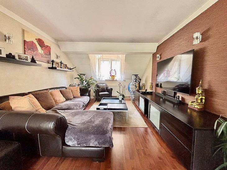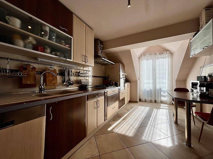 Eladó tágas tetőtéri lakás Újlak csendes, zöldövezeti részénA Kolosy tér és a Hármashatár-hegy közelében, egy hangulatos, macskaköves utcában kínálunk eladásra egy 148 m²-es, második emeleti tetőtéri lakást, egy négylakásos házban. A környék folyamatosan fejlődik, szemben lévő épületet épp felújítják, a közelben sportpálya is található.A lakás 3 különnyíló szobával rendelkezik (14, 16 és egy 33 m²-es nappali), utóbbiból közvetlen kijárat nyílik a napfényes, 10 m²-es teraszra. A konyha tágas, kamrával és francia erkéllyel. Külön fürdő, két WC, gardrób, valamint saját padlás és tároló is tartozik hozzá. A hálószobák klimatizáltak, a nappali igény esetén könnyen kettéosztható, így akár egy plusz szoba is kialakítható. A lakáshoz kizárólagos kertkapcsolat is jár.A ház használati megosztással rendelkezik, a társasházzá alakítás folyamatban van. Ritka lehetőség a környéken, ahol már szinte csak nagyobb társasházak találhatók, de a lakás jelenlegi állapotában is hitelezhetőHa egy napfényes, nyugodt, jól megközelíthető otthont keres Budán, ez a lakás remek választás. További információért, megtekintésért keressen minket bizalommal.