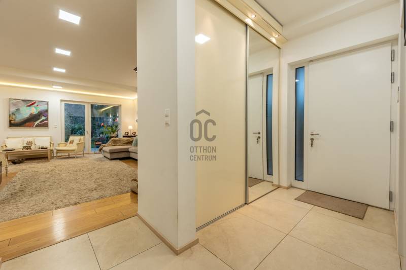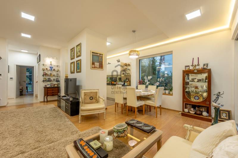 Eladásra kínálok Adyligeten, a II. kerületben egy 200 m²-es, 4 hálószobás, modern családi házat 729 m²-es telken.A ház 3 méteres belmagasságával, tágas tereivel és minőségi anyaghasználatával kiváló otthont nyújt többgyermekes családok számára is.A nappali–konyha–étkező 50 m²-es, négy különnyíló hálószoba (16 m², 12 m², 18,7 m², 17 m²) és több terasz (25,4 m², 14 m², 16,2 m², 9 m²) tartozik hozzá, amelyek közvetlen kapcsolatot biztosítanak a kerttel.A fűtésről és hűtésről Daikin hőszivattyús rendszer gondoskodik, mennyezeti fűtőszálakkal és padlófűtéssel kombinálva, geo áramról, kedvezményes tarifával.A havi átlagos energiafogyasztás rendkívül kedvező (kb. 29 000 Ft/hó), a vízfogyasztás kéthavonta kb. 10 000 Ft.A ház 15 cm-es szigetelést és ürömi mészkőburkolatot kapott.A háromrétegű nyílászárók kívül antracit színű fém, belül fehér műanyag kivitelűek, motoros zsalúziákkal ellátva.Riasztórendszer és távfelügyeleti bekötés is kiépítésre került.A belső terek természetes tölgyfa svédparkettával, a vizes helyiségek nagy méretű hidegburkolatokkal készültek.A konyhában magasfényű világos bútorok és beépített Bosch gépek találhatók.A gondozott, nagy ősfás kertben kerti tároló kis ház is helyet kapott.Adyliget kiválóan megközelíthető tömegközlekedéssel és autóval is: a 10-es út és a környék főbb közlekedési útvonalai gyors összeköttetést biztosítanak Budapest belső kerületeivel és az M0-ás körgyűrűvel.A környéken bevásárlási lehetőségek, orvosi rendelő, gyógyszertár, iskolák és óvodák könnyen elérhetők.A környezet csendes és rendezett, a levegő tiszta, a zajterhelés minimális.Ez a környék ideális választás azoknak, akik városi kényelemre és természetközeli életre egyaránt vágynak.További részletekért hívjon mielőbb!Egyedi igényekre szabott lakáshitelekkel állunk rendelkezésére. Bankfüggetlen Hitel Centrumunk az országban elérhető összes bank és hitelintézet ajánlatát versenyezteti az Ön számára díjmentesen.Munkatársaink nagy szakmai tapasztalattal várják Önt az előre egyeztetett időpontban akár a normál munkaidő után is.