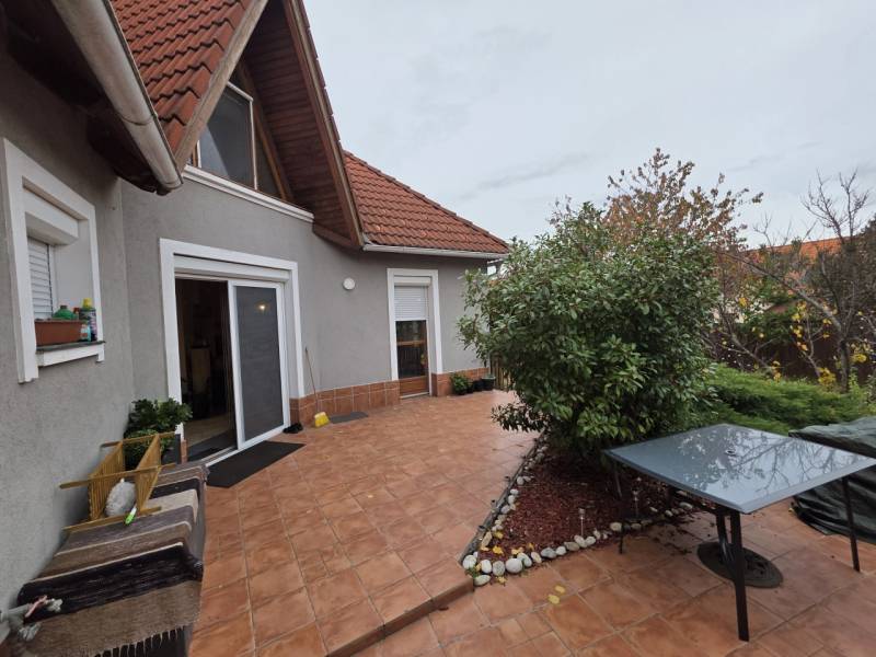 Veszprém – Bakonyalja lakótelep – Kertvárosi környezetben, gondozott telken eladó egy kiváló adottságokkal rendelkező, 2005-ben épült, téglaépítésű láncházi családi otthon!A 439 m²-es, szépen karbantartott és parkosított kert igazi nyugalomsziget. A telek hátsó részén automata locsolórendszer működik, a ház előtti részen pedig térkövezett gépkocsibeálló biztosít kényelmes parkolást akár több autó számára is, a házhoz tartozik továbbá egy tágas, kb. 30 m²-es garázs.A ház belső tere jó elrendezésű és világos:3 külön nyíló hálószobaNagy, galériás nappali – melynek éke a hangulatos cserépkályhaAmerikai konyha (tágas és praktikus étkezőrésszel)2 fürdő + 2 WC (külön az alsó és felső szinten)Klíma gondoskodik a kellemes hőmérsékletről a nyári időszakbanAz ingatlan ideális választás:családok számára,akik csendes, mégis jól megközelíthető helyet keresnek,akik értékelik a kényelmet, a gondozott környezetet és a tágas életteret.A környék biztonságos, nyugodt, ugyanakkor minden szükséges szolgáltatás (iskola, óvoda, bolt, buszmegálló stb.) könnyen elérhető.Amennyiben a veszprémi GDN Ingatlaniroda által kínált felújított lakás, vagy bármely, a kínálatunkban található ingatlan felkeltette érdeklődését, forduljon hozzám bizalommal!Ingatlanirodánk díjmentes, banksemleges hitelügyintézéssel, illetve ügyvédi tanácsadással is áll Ügyfeleink rendelkezésére!