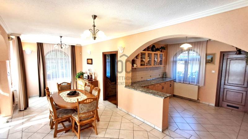 Debrecen, Felsőjózsa, Északi soron eladó egy igényes, 163 nm-es, 2003-as építésű családi ház 1246 m2-es telken. A földszinten nappali-étkező-konyha, 1 szoba, WC-s fürdőszoba, kamra és egy másik konyha van, az emeleten a közlekedőből nyílik 3 szoba, gardrób, fürdőszoba és külön WC.Jellemzők:--2 egyedi tervezésű konyha beépített gépekkel--a földszinten zuhanykabinos, az emeleten hidromasszázs sarokkádas fürdőszoba dupla mosdókagylóval--gardrób szoba, beépített szekrények--riasztó rendszer, inverteres klíma--a nappaliban fűtött padkás cserépkályha--fűtés gáz és vegyes tüzelésű kazánnal is lehetséges--38 cm-es tégla falazat 5 cm hőszigeteléssel--23 m2-es aknás, fűthető garázs, a térkövezett udvaron 5 db gépkocsi parkolására van lehetőség-- 2005-ben épült 42 nm-es téglaépület, mely iroda, műhely, tároló szerepet is betölthet--a kertben van egy fa szerkezetű filagória, búboskemencével, bográcsozóval, kinti konyhával és étkezőhellyel-- 6x3 m-es, 110 cm mély, fedett medence, vízforgató- és szűrő berendezéssel--szépen füvesített, örökzöldekkel, gyümölcsfákkal beültetett kert, mely automata öntözőrendszerrel, fúrt kúttal ellátott. Az ingatlan per-, tehermentes, nyilvántartása rendezett, minden épület fel van tüntetve térképmásolaton. A rezsi alacsony, a ház igény szerint, akár teljes bútorzottal is eladó. A lakóház rendezett, nagy értékű ingatlanokkal beépített utcában van, kiváló szomszédokkal.Debrecen-Józsa élhető, családias hangulatú, kiváló infrastruktúrájú városrésze Debrecennek: a Józsa-Park bevásárló központ, spar, tesco, piac, fagylaltozó, iskolák, óvodák a közelben vannak.Debrecenig kiépített bicikliút van, autópálya felhajtó pár perces autóútra található.További információkért, illetve időpont egyeztetéséért keressen elérhetőségeimen!