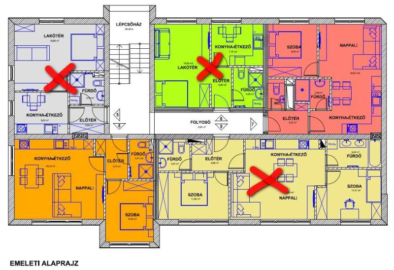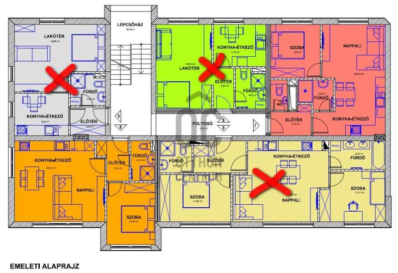 Tisztelt Érdeklődő!Makón, a Liget Lakóparkban jelenleg is zajlanak azok az átalakítási és felújítási munkálatok, amelyek egy teljesen megújult, modern emeleti lakást fognak eredményezni! Ez azt jelenti, hogy Ön lesz az elsők között, aki birtokba veheti ezt a világos, praktikus elrendezésű otthont – vadonatúj állapotban.Az ingatlan a Liget utcában, egy zárt lépcsőházas, mindössze 16 lakásos társasházban található. A belváros autóval alig 3 perc, kerékpárral 5 perc, gyalog pedig körülbelül 17 perc alatt megközelíthető, így minden fontos hely könnyen elérhető. Bevásárlási lehetőségek, óvoda, iskola és buszmegálló néhány száz méterre található, ami a mindennapokat igazán kényelmessé teszi.Az épület emeletén eladó egy 43 m²-es, téglaépítésű tetőtéri lakás, amely teljeskörű megújuláson megy keresztül – az új vezetékektől a burkolatokig minden részlet megújul. A lakás bútorozatlanul, beépített gépek nélkül kerül átadásra, ugyanakkor a szükséges kiállások és csatlakozási pontok már előre kialakításra kerülnek, így az új tulajdonos könnyedén berendezheti otthonát saját ízlése szerint.A teljes áram-, víz- és csatornahálózat új, a gáz nincs bekötve a lakásba, azonban a fűtés házközponti, gázzal üzemelő rendszerrel történik. A hőfokszabályzós radiátorokon keresztül működő rendszer lakásonként egyedi hőmennyiség-mérőkkel rendelkezik, így minden lakó saját fogyasztása után fizet.A melegvíz-ellátást korszerű, energiahatékony okos bojler biztosítja, a lakásban klímaberendezés kiépítése is megtörténik, a háromrétegű, hőszigetelt műanyag nyílászárók pedig a hatékony működést és alacsony energiafogyasztást garantálják. A nappali és konyha egybenyíló tere ideális központja lesz a mindennapoknak, a hálószoba pedig nyugodt, pihenésre alkalmas helyiségként szolgál.A fürdőszoba modern, letisztult burkolatokkal készül, melyek mintái megtekinthetők az irodánkban.Parkolás az utcán díjmentesen lehetséges, de saját parkolóhely is vásárolható a telekhatáron belül.A lakás legkésőbb 2026. május 31-én kerül átadásra, így még időben megálmodhatja, hogyan alakítaná saját ízlésére új otthonát.Az alaprajzokon feltüntetett négyzetméterek tájékoztató jellegűek, a végső adatok kisebb mértékben változhatnak.Foglaljon időpontot még ma, és tegye meg az első lépést új otthona felé a Liget Lakóparkban!Részletes műszaki tájékoztatás és fizetési ütemezés az irodánkban elérhető.Makóról bővebben itt: http://mako.hu/makoi-seta/Legyen tisztában pénzügyeivel, mielőtt elkötelezi magát! Ebben díjmentesen az Ön rendelkezésére áll bankfüggetlen hitelközvetítőnk.Vevőinket profi és kedvező díjazású ügyvédi háttérrel is segítjük a szerződéskötés során.#otthoncentrummako #makoiingatlan #eladolakas #makoeladolakas #ingatlan #otthoncentrum #ingatlanpiac #otthon #hagymatikum #forsale #oc #hitel #ocmako #biztositas #realestate #veledmindenlepesnel #homesweethome #ingatlankozvetites #almokatepitunk #koltozes #felujitottlakas