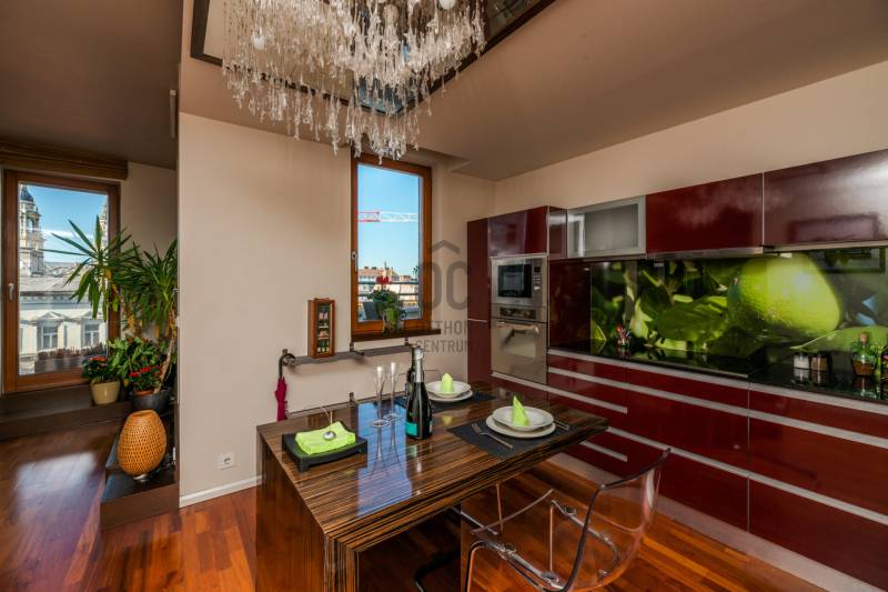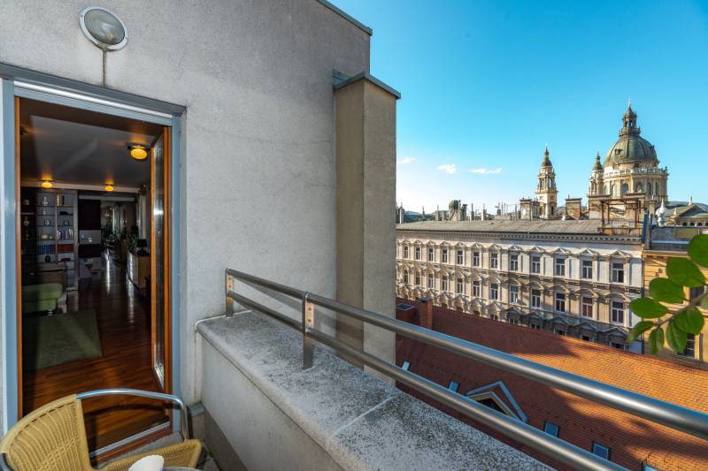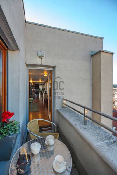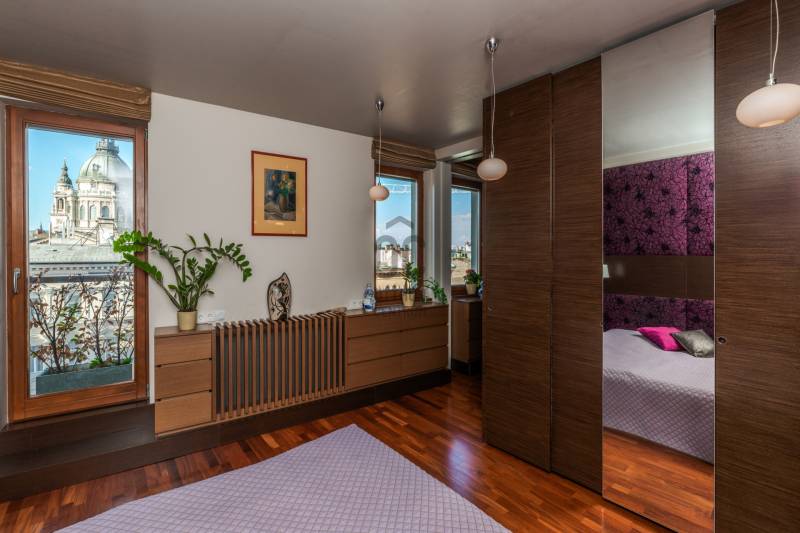 Igazi ritkaság a belváros szívében – panorámás luxuslakás a Central Passage-banEladásra kínálunk Budapest egyik legkeresettebb belvárosi épületében, a Central Passage-ban egy 7. emeleti, 90 m²-es, kivételes adottságokkal rendelkező luxuslakást.Az ingatlan különlegességét nemcsak a két lakás egybenyitásával kialakított, egyedi elrendezés adja, hanem a magas szintű kivitelezés, a minőségi anyaghasználat, és az a páratlan panoráma, amely minden ablakból elénk tárul. A lakásból nemcsak a Szent István-bazilika, hanem a Mátyás-templom is látható – mindez akár a konyhából gyönyörködve is élvezhető.A tágas, elegáns fürdőszobában szauna is helyet kapott, amely tovább fokozza az otthon kényelmét és a mindennapi luxus érzetét. A lakás kialakítása során minden részletre gondosan ügyeltek, így tökéletes választás mindazok számára, akik egy igazán különleges, városi panorámás otthont keresnek.A Central Passage modern épülete igényes lakóközösséggel és rövid távú bérbeadási engedéllyel rendelkezik, így az ingatlan befektetésként is kiemelkedően vonzó lehet.Ez a lakás egyedi – akárcsak az, aki megtalálja benne a saját otthonát.A képek valóban magukért beszélnek.Hívjon, jöjjön el, vegye meg!