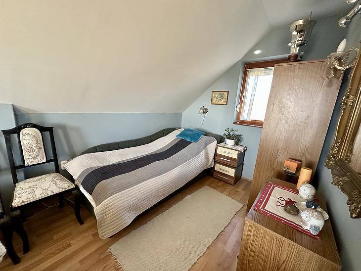 Eladó Törökhegy egyik legcsendesebb zsákutcájában egy örökpanorámás, két szintes családi ház.Az alsó szinten tágas előszoba, közlekedő, amerikai konyhás nappali, egy külön szoba, fürdőszoba és spejz található.A felső szint egy hangulatos nappalit, egy hálószobát, fürdőszobát és egy erkélyt rejt, ahonnan lélegzetelállító panoráma nyílik a városra és a környező tájra. Délkeleti fekvése miatt a ház egész nap napfényben fürdik, így mindig világos és tágas tereket biztosít.A ház fűtéséről gázkonvektor és egy hangulatos cserépkályha gondoskodik, míg a meleg vizet napkollektor biztosítja, így az ingatlan fenntartása energiatakarékos és környezetbarát. A dupla üvegezésű fa nyílászárók nemcsak esztétikusak, hanem kiváló hő- és hangszigetelést is nyújtanak. A házhoz tartozik egy két helyiségből álló pince, amely hobbihelyiségként, műhelyként vagy tárolóként is remekül hasznosítható.A háztól mindössze 6 perc sétára található a buszmegálló, így a város központja gyorsan és könnyen elérhető.Kérdésével, illetve megtekintése szándékával keresse irodánkat, amennyiben hitelre lenne szüksége, profi hitelközvetítő kollégáink díjmentesen állnak rendelkezésükre.Amennyiben eladásra lenne szüksége új ingatlanjának megvásárlásához, irodánk ingyenes értékbecslést vállal egész Vác területén.