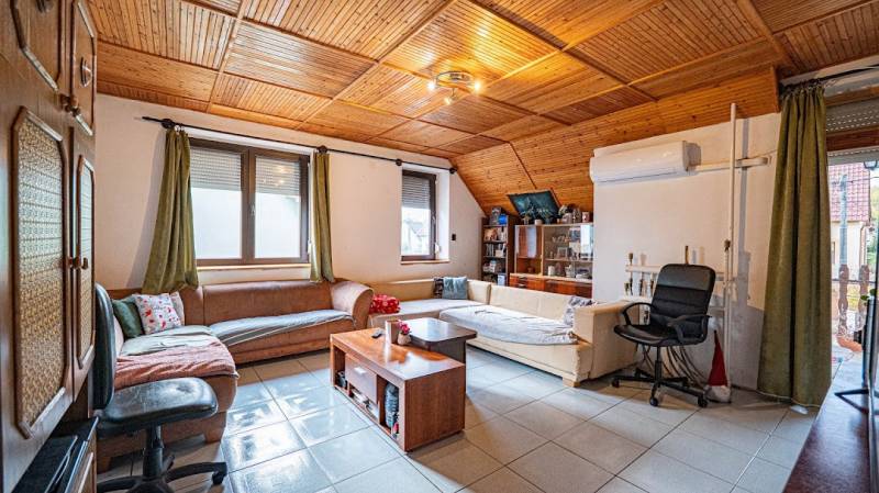 CSALÁDOSOK FIGYELEM!! Paks szívében, a felkapott Lakótelepen kínálunk eladásra egy igazán különleges, használt házat, amely tökéletes választás lehet számodra és családod számára. Az ingatlan 150 m2-es alapterületével és 860 m2-es telekméretével bőséges teret biztosít a mindennapi élethez. A házban öt tágas szoba található, 2 konyha, 2 fürdőszoba így minden családtag számára kényelmes és privát teret biztosít. A világos nappali a családi összejövetelek központja lehet, ahol együtt élvezhetitek a közös pillanatokat. A fürdőszoba jól megtervezett, így a reggeli rohanásokban is praktikus megoldásokat kínál. A 10 m2-es terasz ideális helyszín a pihenésre, ahol a reggeli kávé mellett élvezheted a napfelkeltét, vagy a nyári estéken a barátokkal való összejöveteleket. Az ingatlan állapota jó, a fűtést gáz (cirko) biztosítja, plusz villany, és vegyes kazán is. 2 szintnek külön van villany és gáz kedvezmény. Padló fűtés adja az egyenletes meleget, Míg a klíma az emeleten gondoskodik a kellemes hőmérsékletről a forró nyári napokon. A biztonsági ajtó pedig garantálja, hogy mindig biztonságban érezd magad. Minden ablak hőszigeteltre van ki cserélve. A ház 7 csm-es szigetelést kapott. A környék ellátottsága kiváló, hiszen a közeli boltok, iskola és óvoda mindössze pár perc sétára találhatóak. A központi elhelyezkedésnek köszönhetően a kitűnő közlekedési lehetőségek révén gyorsan elérheted a város többi részét, legyen szó autós közlekedésről vagy tömegközlekedésről. A csendes környék és a rendezett kert ideális környezetet biztosít a családi élethez, és a kisállattal költözhető lehetőség is vonzóvá teszi az ingatlant a házikedvencek szerelmesei számára. Ezen kívül a házhoz tartozik egy kerti tároló, amely segít rendben tartani a kültéri eszközöket. Az egész ház alatt szuterén van, amely sok tároló teret ad. A tetőterasz pedig extra lehetőségeket kínál, ha szeretnél egy kis zöld oázist kialakítani a saját ízlésed szerint. A nyugalom és a biztonság garantált, hiszen a környék csendes és rendezett, ideális hely a gyerekek számára, ahol szabadon játszhatnak. Ez a tehermentes ingatlan nemcsak egy ház, hanem egy otthon, ahol a család minden tagja megtalálhatja a helyét. Ha bármilyen kérdésed van, vagy szeretnéd megtekinteni az ingatlant, bátran keresd fel a megadott elérhetőségeinken! Ne hagyd ki ezt a remek lehetőséget, hiszen az álmaid otthona csak egy hívásnyira van!