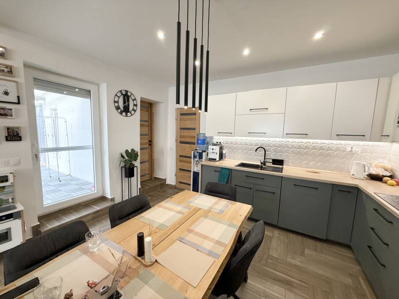 Eladó teljes körűen felújított, dupla komfortos családi ház nagy telekkel Vámospércsen!Kiváló elhelyezkedésű, igényesen felújított, belsőépítész által tervezett enteriőrrel rendelkező családi ház eladó, mindössze 5 perc sétára a városközponttól, bolttól és szintén sétatávolságra az iskolától/óvodától!A ház 17 méteres utcafronttal, új kerítéssel és elektromos kapuval rendelkezik, így biztonságos, zárt környezetet nyújt az egész családnak.Főbb jellemzők:•Teljes körű felújítás történt 4 évvel ezelőtt (víz-, villany-, szennyvíz-, gázrendszer teljes cseréje, teljes tetőszerkezet cseréje, alapokig visszabontva minden!) MINDENRŐL FOTÓDOKUMENTÁCIÓ KÉSZÜLT! •Új tetőszerkezet Bramac Merito Plus könnyített beton cseréppel•46 cm vastag vályogfalak, új nemesvakolattal ellátva•Teljes padlófűtés az egész házban + radiátoros kiegészítő fűtés•Új kombi gázkazán és 120 literes villanybojler biztosítja a melegvizet•3,5 kW-os Midea hűtő-fűtő klíma•Műanyag, 5 légkamrás, 2 rétegű nyílászárók, redőnnyel és szúnyoghálóvalElrendezés és helyiségek:•Tágas nappali – étkező – konyha egy légtérben, világos, barátságos hangulattal•szülői hálószoba saját zuhanyzós fürdővel•2 gyerekszoba, melyekhez saját fürdőszoba tartozik•Beépített szekrények a folyosón a praktikus tárolásért•30 m²-es terasz, víz- és lefolyókiállással – akár kültéri konyha is kialakíthatóKiegészítő helyiségek és extrák:•Külön bejáratú hátsó helyiség, jelenleg tárolóként funkcionál, de irodának vagy vendégszobának is tökéletesen alkalmas•10 m²-es pince, amely kiváló tárolásra vagy akár hobbyhelyiségnek is•1680 m²-es telek, ahol bőven jut hely kertnek, pihenésnek, akár medencének isKonyha és felszereltség:A konyha teljesen gépesített és beépített: mosó/szárítógép mosogatógép indukciós főzőlap sütő páraelszívó hűtőszekrényMinden szobában és a nappaliban TV és internet kiállás került kiépítésre, tökéletesen alkalmas modern családi élethez vagy home office-hoz is.További kérdés, megtekintés esetén hívjon, szívesen válaszolok!