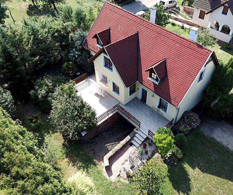 Kővágóörsön kitűnő állapotú, 170nm-es családi ház eladó!A Káli-medence szívében, Kővágóörsön kínáljuk megvételre ezt a lakó-üdülő övezetben elhelyezkedő, folyamatosan karbantartott, kétszintes, tökéletes állapotban lévő családi házat, mely egy 847 nm-es, parkosított telken található. - A lakóház a 2000-es évek elején épült, csendes, nyugodt környezetben, természetközeli, mégis közel a központhoz. - A földszinten előtér, tágas nappali, konyha-étkező, kamra, fürdőszoba található. - A tetőtérben 3 hálószoba, nappali, fürdőszoba került kialakításra. A nappalik bővíthetőek plusz szobával. - Pince szint: társalgó szoba, garázs, kazánház, pakoló helyiség. - Télen vegyes tüzelésű kazán, radiátoros fűtés, kandalló és Nobo panel gondoskodik a melegről. - Nyáron 3 db hűtő-fűtő klíma biztosítja a komfortot. - A telken fedett grillező, étkező, több autó számára parkolási lehetőség, a kert teljesen körbekerített. - Elhelyezkedés: autóval 5 perc Révfülöp, 3 perc a pálkövei strand.Az ingatlan tökéletes állandó otthonként, nyaralónak, vagy akár befektetésnek is! Igény szerint tovább bővíthető.Amennyiben kérdése lenne vagy szeretné személyesen megtekinteni az ingatlant, forduljon hozzám bizalommal!