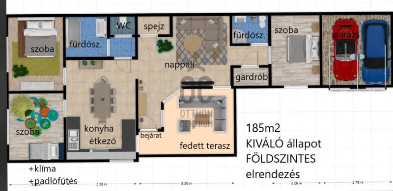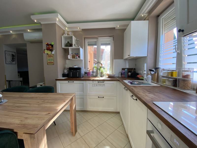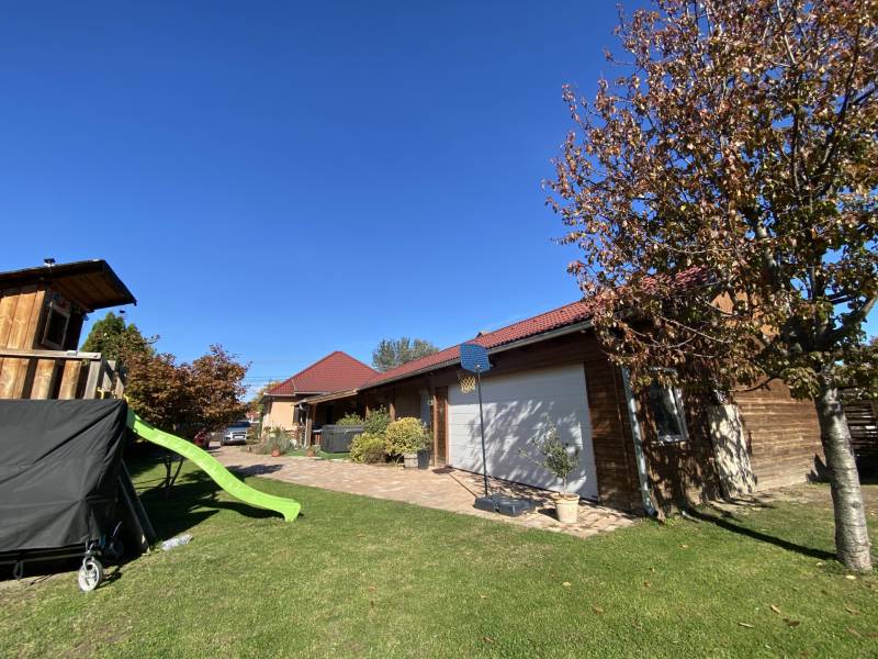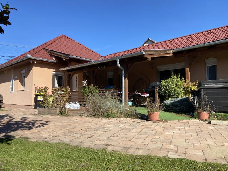 Földszintes álomOtthon GödönGöd a Dunakanyar kapuja, egy festői szépségű bűbájos kertváros a Főváros biztonságot nyújtó közelében.Csodálatos természeti adottságaival, jó nevű iskoláival, pezsgő Duna-parti életével, madárcsicsergős, jó levegőjű hétköznapjaival vált a családalapítók és kiköltözők kedvelt célpontjává.Itt, Felsőgöd szívében került eladósorba egy újjáépített, megkapó hangulatú családi ház.Rendezett, családi házas utcában, tisztes porták szomszédságában, jól ellátott területen kapott helyet.Majd\' 900m2-es kertjét automata kapuval felszerelt míves kovácsoltvas kerítés őrzi, viacoloros autóbeállójáról megközelíthető a 2 autó parkoltatására alkalmas duplagarázs, de a mediterrán térkövön további 3-4 autó parkoltatható kerten belül.A kert gyönyörűen karbantartott, rózsatövek és örökzöld dísznövényekkel ültetett lugasok emelik hangulatát. Kerti tároló gondoskodik a szerszámok elhelyezéséről, gyűrűs kút pedig a kényelmes pázsit gondozásról. Egészséges, beállt thuja sövény, épített játszótér, hatalmas medence, és jakuzzi is szolgálják a Család nyugalmát, ezek mind a vételár részét képezik!A ház 185m2-es, FÖLDSZINTES elrendezésű, Tulajdonosai minőségbeli maximalizmusának méltó tükreként egyedi hangulatvilágú Otthont teremtettek a 2016os teljes átépítés során.3 hálószoba (16m2,18m2,25m2!), 2 fürdőszoba, gardróbhelyiség, hatalmas nappali, spejz, konyha-étkező, és tágas előszoba alkotják a helyiséglistát.A fűtésrendszer megújult, kondenzációs cirkókazán került behelyezésre, a hidegburkolatok alatt padlófűtéssel, hálószobákban radiátoros hőleadókkal.Külső dryvit hőszigetelés, KLÍMA, redőnnyel és szúnyoghálóval is felszerelt műanyagtokos hang és hőszigetelő nyílászárók, rusztikus beltéri ajtók, kamera és riasztórendszer, magasfényű gépesített konyhabútor!Kiváló tájolásának köszönhetően egész nap világos, fedett teraszán az egész család kényelmesen fogyaszthatja a nyáresti vacsorát.Jöjjön el, nézze meg, ha nagy terekre vágyik, ha nem akar felújítani, ha madárcsicsergős bájos utcában tervezi Családja jövőjét egy magas felszereltségű, nagybetűs OTTHON-ban!Vigyázat! -abszolút beleszeretős!Közelben: MINDEN: vasútállomás ( Bp Nyugati PU 30p), városi buszjárat megállója ( Bp.Újpest Városkapu 40p), iskola, óvoda, orvosi rendelő, posta, strand, teniszpark, bicikliút, játszótér, lovarda, bevásárlási lehetőségek, pékség, street gym park.Budapest autópályán 25 perc alatt elérhető, autópálya lehajtó 6perc!