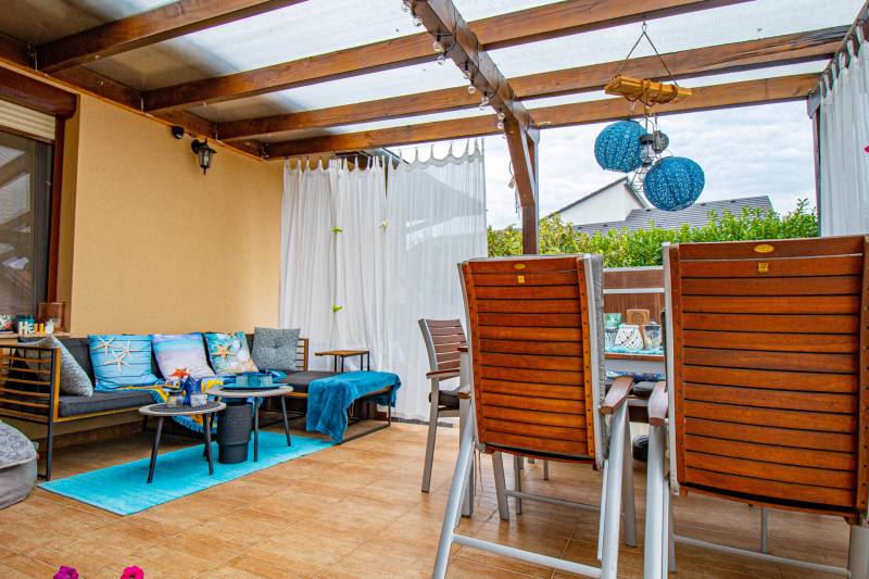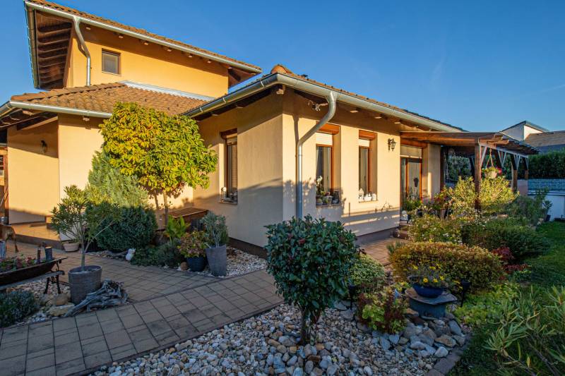 Soprontól mindössze néhány kilométerre az Alpok lankáinál kerül eladásra egy mediterrán stílusú családi ház.AZ INGATLAN JELLEMZŐIÉpítés éve: 2013Kétszintes, nettó 148 m² / bruttó 185 m² alapterület38-as Porotherm tégla építés, 10 cm-es szigeteléssel554 m2 telekHELYISÉGEK ÉS ELRENDEZÉSFöldszint:Amerikai konyhás nappali teraszkapcsolattal2 hálószoba, az egyik saját fürdőszobávalFürdőszoba + külön toalettKamra, háztartási helyiség (gépesített, vízlágyítóval és ivóvíz rendszerrel)KÜLÖN LAKRÉSZ ami a FŐ LAKRÉSZBŐL is MEGKÖZELÍTHETŐ26,8 m²-es, külön bejárattal is, saját konyhával és fürdőszobával➡️Ideális két generáció együttélésére vagy vállalkozás, rendelő, iroda kialakítására is.Emelet:1 szoba1 tárolóMŰSZAKI FELSZERELTSÉGFűtés: padlófűtés, Vaillant kazán (2024-es csere)Hangulatos öntöttvas kandalló Melegvíz: 180 literes tároló4 db hűtő-fűtő klímaRiasztó- és kamerarendszerBorovi fenyő beltéri ajtók, Rehau műanyag bejárati ajtóLépcső alatti beépített szekrény, padlás tárolási lehetőséggelKERT ÉS KÜLTÉR25 m²-es fedett terasz dombokra és naplementére néző csodás kilátássalMedence (3×1,2 m), kerti zuhany, tűzrakó / grillezőKét kerti tároló: 7,8 m² és 7,1 m²Kutyakennel: 3×2 mGarázs és fedett előgarázs (Hörmann kapukkal)Kút, amely biztosítja az öntözéstKonyhakertLOKÁCIÓA ház zöldövezeti, csendes környezetben található, mégis rövid autóútra Soprontól. A település kiváló infrastruktúrával rendelkezik – bölcsőde, óvoda, iskola, orvosi ellátás, posta, üzletek és éttermek mind helyben megtalálhatók.A közösségi élet aktív, rendszeres rendezvényekkel, sportolási lehetőségekkel és túraútvonalakkal.A közelben Natura 2000-es természetvédelmi terület és horgásztó kínál kikapcsolódást a természet szerelmeseinek.Tökéletes választás mindazoknak, akik a természet közelségét és a városi infrastruktúra előnyeit egyszerre szeretnék élvezni.Hitelre van szüksége?Az Otthon Centrum az ország egyik legnagyobb és legmegbízhatóbb hitelközvetítőjeként, teljes körű és díjmentes hitelügyintézéssel, biztosításkötéssel áll rendelkezésére!Kérje személyre szabott ajánlatunkat Kollégáinktól!