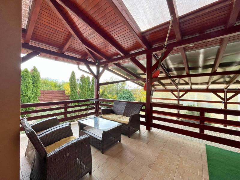 Esztétikus és magas felszereltségű családi ház eladó Őrbottyán központjában!Az ingatlan egyedi tervek alapján épült 2005-ben, egy összközműves, 991 nm-es telekre. A 168 nm-es, 5 szobás ház tégla építésű, 5 cm hőszigeteléssel ellátott. Fűtéséről és melegvíz-ellátásról kondenzációs gázkazán gondoskodik, a közös helyiségekben és fürdőszobákban padlófűtéssel, hálószobákban radiátor hőleadókkal. A napelem rendszernek és a ház adottságainak köszönhetően a rezsi rendkívül alacsony.A földszinten hűtő-fűtő klíma, a tetőtérben rejtett beltéri egységgel rendelkező klíma biztosítja a kellemes hőmérsékletet.További műszaki adatok: - műanyag nyílászárók alumínium redőnyökkel és szúnyoghálóval- biztonsági bejárati ajtó,- magas minőségű beltéri ajtók, burkolatok- riasztó és kamera rendszer- BWT vízlágyító rendszer- elektromos kapu és garázsajtó- öntözőrendszer a kertben- gépesített konyha- jacuzzi- beépített szekrények- dupla mosdós fürdőszobák- fedett 26 nm-es terasz- fedett, dupla kocsi beálló- gondozott növényzet- térkövezett udvarRöviden az otthonról:A házba belépve a közlekedőn át egy ízlésesen kialakított és meleg hangulatú térbe érkezünk, ahol 2 lépcsőfokos szinteltolással elkülönül a nagy étkező-konyha rész és a galériás kialakítás miatt, tágas és világos terekkel rendelkező, otthonos nappali. A földszinten helyett kapott egy hálószoba saját gardróbbal, fürdőszoba WC-vel, háztartási helyiség, ahonnan közvetlen átjárás vezet a 16 nm-es garázsba.A nappali impozáns eleme sötétszínű, kényelmes lépcső, amely a tetőtérbe vezet. Itt 3 hálószoba és egy zuhanyzó+WC kapott helyet, kis előtérrel. A szobák hangulata a tető összetett kialakítása miatt igazi elvonulós, pihenős, privát helyek a család kisebb-nagyobb tagjai számára.Télen-nyáron élvezhetjük a nappaliból és az udvarról is megközelíthető nagy, fedett teraszt, ami jó beszélgetések, pihenések ideális helyszíne.Az udvar belső részében fedett parkolási lehetőség is rendelkezésre áll, ezen felül az utcafronton található fűtött garázs és további parkolóhelyek állnak rendelkezésre kapun belül. A telek hátsó, füves része ideális helyszín kerti-sütögető kialakítására, gyerekeknek játszani, konyhakertnek és család négylábú tagjai is örömüket lelik benne.Elhelyezkedés:Őrbottyán Pest vármegyében, a fővárostól mindössze 25 kilométerre, Veresegyház és Vác között található, nyugodt, zöldövezeti település, kiváló közlekedéssel Budapest irányába.Autóval az M2-es autóúton, illetve a Budapest–Vác vasútvonalon kényelmesen megközelíthető; a vonat kb. 35–40 perc alatt a Nyugati pályaudvarra ér.A településen van óvoda, bölcsőde, iskola, orvosi rendelő, posta, gyógyszertár, kisebb éttermek és több bevásárlási lehetőség is. Őrbottyán rendezett, biztonságos, családbarát környezetet kínál, ahol a kertvárosi nyugalom és a főváros közelsége ideálisan találkozik.Ha felkeltettem érdeklődését hívjon bizalommal. Amiben segíteni tudjuk ingatlanvásárlását:- jogi háttér- földhivatali ügyintézés- ingyenes, bankfüggetlen hitelügyintézés (CSOK és Babaváró ügyintézése is.)- energetikai tanúsítvány elkészítése- biztosítás- belsőépítész