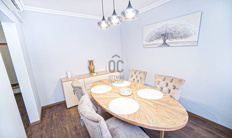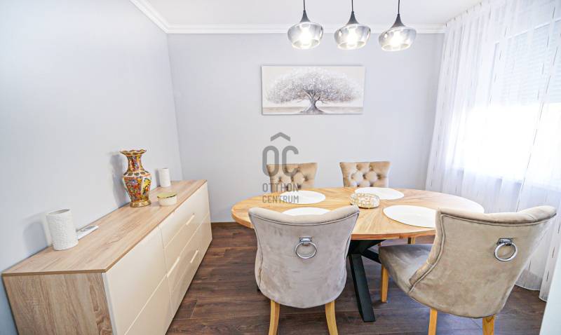 Egy frissen felújított, elegánsan kialakított, berendezett lakás eladó az Egyetemek és a Nagyerdő közelségében.Debrecen Sestakerti részén a Komlossy utcában található.Az elhelyezkedésének köszönhetően, könnyen elérhetőek az Egyetem fő épülete ( 400 m ), sportolási ( DEAC sportcentrum 300 m), kikapcsolódási lehetőségek, üzletek, és éttermek.Busz (3) és villamos megálló ( 2) 5 perc séta távolságon belül elérhető.Kisebb lakóközösségű társasház mely előtt ingyenes parkolási lehetőség áll rendelkezésre.A lakás paraméterei:A lakás 1. emeleti, nettó 56 nm -s melyhez tartozik egy 4nm -s erkély.Konyha + étkező, 2 szoba, fürdőszoba, WC, előszoba elosztású2025 ben teljeskörű felújításon eset át, mely az elektromos és vízvezetékek cseréjétől, új burkolatok lerakásán keresztül, a modern bútorok és minőségi háztartási gépek beépítéséig mindent felölelt.A kialakításban és burkolataiban megújult fürdőszoba és a WC külön helyiségben,Hívjon és nézze meg, higgye el szebb mint a képeken!Debrecen, Sestakert, Komlóssy, első, új, emelet, bútor,