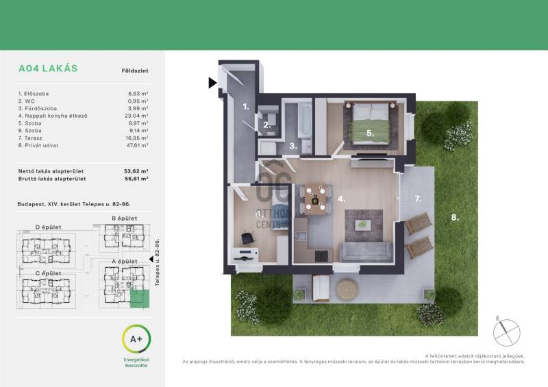 Projekt bemutatásaA Daisy Liget Zugló csendes részén épül, közel a Bosnyék térhez. A megújult kertvárosias környezet a pesti oldal egyik legkedveltebb részei közé tartozik, az itt élők egyszerre élvezhetik a csöndes kis utcák nyugalmát és a belváros közelségét. A Bosnyák téren mindent megtalálunk ami a hétköznapi élethez szükséges: a Zenit corso bevásárlóközpontot, a Bosnyák téri piacot, patikát, éttermeket és kávézókat.Számos óvodát, általános iskolát, játszóteret és sportközpontot is találunk a 10 perces sétatávolságon belül.A társasház különleges homlokzatával, egyedi fiatalos dizájnjával, kiemelkedik a környező épületek közül. A 4 emelet magas, szellősen elhelyezett épületek tökéletesen illeszkednek a környéken jellegzetes, előkertes kialakítású épületekhez.Figyelembe véve a jövő elvárásait, a társasház modern, környezetbarát, mennyezeti hűtő, -fűtő rendszerrel ellátott.Vevőinknek lehetőségük nyílik, hogy új otthonukat az utolsó részletig személyre szabják: változtathatnak az ingatlann elosztásán, széles kollekcióból választhatnak meleg- és hideg burkolatokat, szanitereket. Az alapáras burkolatokon felül, elérhetőek feláras termékek is, mely biztosítja, hogy olyan lakásban lakjanak mit megálmodtak maguknak.A fizetési ütemezés: 10-90%A jelen adatok tájékoztató jellegűek, ezért a Beruházó (sem a hirdető) azok változásával, vagy bármely attól való eltéréssel kapcsolatban semmilyen kötelezettséget, vagy felelősséget nem vállal.Az alaprajzokon ábrázolt berendezési tárgyak és bútorok, a burkolatok megjelenése nem képezi a szerződés tárgyát. A pontos felszereltségről a műszaki leírásban olvashat bővebben.Az aktuális lakáskínálatról és árakról érdeklődjön telefonon!