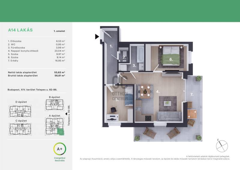 Projekt bemutatásaA Daisy Liget Zugló csendes részén épül, közel a Bosnyék térhez. A megújult kertvárosias környezet a pesti oldal egyik legkedveltebb részei közé tartozik, az itt élők egyszerre élvezhetik a csöndes kis utcák nyugalmát és a belváros közelségét. A Bosnyák téren mindent megtalálunk ami a hétköznapi élethez szükséges: a Zenit corso bevásárlóközpontot, a Bosnyák téri piacot, patikát, éttermeket és kávézókat.Számos óvodát, általános iskolát, játszóteret és sportközpontot is találunk a 10 perces sétatávolságon belül.A társasház különleges homlokzatával, egyedi fiatalos dizájnjával, kiemelkedik a környező épületek közül. A 4 emelet magas, szellősen elhelyezett épületek tökéletesen illeszkednek a környéken jellegzetes, előkertes kialakítású épületekhez.Figyelembe véve a jövő elvárásait, a társasház modern, környezetbarát, mennyezeti hűtő, -fűtő rendszerrel ellátott.Vevőinknek lehetőségük nyílik, hogy új otthonukat az utolsó részletig személyre szabják: változtathatnak az ingatlann elosztásán, széles kollekcióból választhatnak meleg- és hideg burkolatokat, szanitereket. Az alapáras burkolatokon felül, elérhetőek feláras termékek is, mely biztosítja, hogy olyan lakásban lakjanak mit megálmodtak maguknak.A fizetési ütemezés: 10-90%A jelen adatok tájékoztató jellegűek, ezért a Beruházó (sem a hirdető) azok változásával, vagy bármely attól való eltéréssel kapcsolatban semmilyen kötelezettséget, vagy felelősséget nem vállal.Az alaprajzokon ábrázolt berendezési tárgyak és bútorok, a burkolatok megjelenése nem képezi a szerződés tárgyát. A pontos felszereltségről a műszaki leírásban olvashat bővebben.Az aktuális lakáskínálatról és árakról érdeklődjön telefonon!