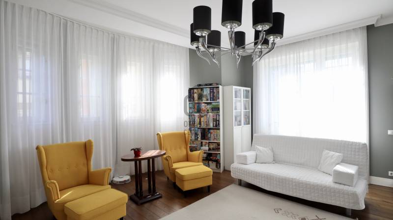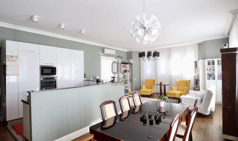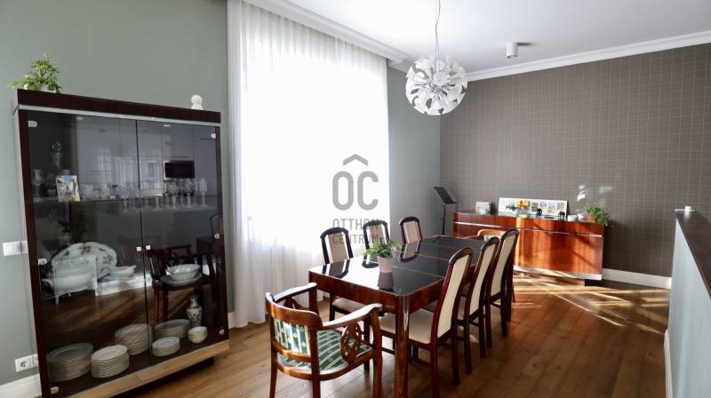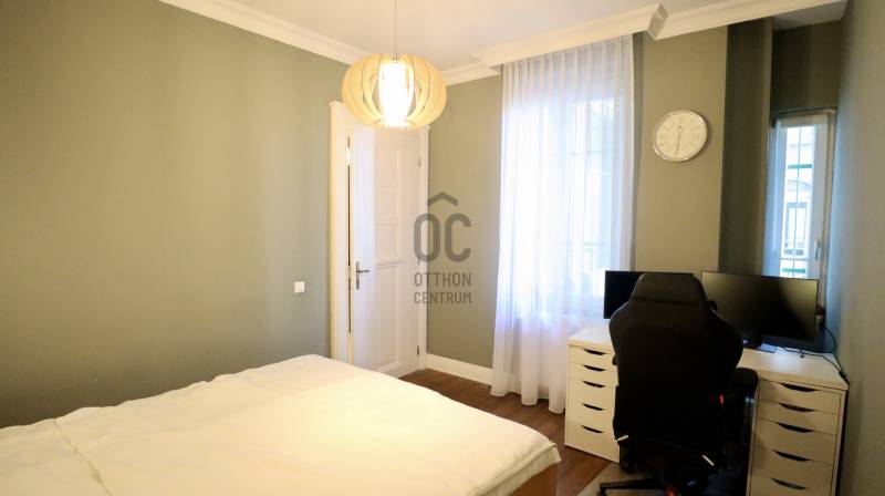 Eladó egy 2016-ben teljeskörű felújításon átesett, 3. emeleti, 3 szobás, hamisítatlan nagypolgári lakás a IX.kerületben, mesés kilátással a Ferenc térre.A felújítás során a lakás külső falain és a lakáson belül 1 főfalon kívül mindent visszabontottak, a lakás alaprajzát újratervezték.Korszerűsítették a lakás fűtésrendszerét, a teljes elektromos hálózatot, vízvezetékeket. Kapott a lakás álmennyezetet is, de a tulajdonosok nagyon ügyeltek rá, hogy a belmagasság és ezáltal a nagypolgári stílus megmaradjon.A felújítás természetesen kiterjedt a külső nyílászárókra (prémium fa ablakokat kapott a lakás) és a belső nyílászárókra is, amelyek egyedileg készíttetett, de az eredeti stílust teljes mértékben megőrző fa ajtók.A konyha természetesen gépesített, sütővel, főzőlappal, borhűtővel.A fűtésről saját gázkazán gondoskodik, illetve a melegvizet is a kazán állítja elő, a nyári hőségben pedig klímák biztosítják a mindig kellemes időt a lakásban.Az új alaprajz kialakításakor nagyon figyeltek rá, hogy élhető, nagy tereket kapjanak, a lakás ékköve az 50 négyzetméteres nappali/konyha/étkező, melyből pazar kilátás nyílik a lakás előtt elterülő Ferenc térre.A két hálószoba 17,5 és 12 négyzetméteresek, a kisebbik hálószobában nagyméretű beépített szekrénnyel (amely nem vesz el a szoba alapterületéből).A ház 1912-ben épült, liftes, az állapota jó, a ház rendelkezik megtakarítással.Közös költség: 43 600 Ft.A lokáció:A lakás a IX.kerület legszebb és egyben legjobban fejlődő részén, a Ferenc téren található, pár perces séta távolságon belül elérhető az M3 metró (Klinikák és Corvin negyed megálló is) és a 4-6 villamos is.Bevásárlási lehetőség a Corvin plázában, illetve a Tűzoltó utcában (Spar és Aldi).A lakás azonnal költözhető, kiváló állapotú, ide tényleg csak be kell költözni, nem kell bajlódni a felújítással.További információkért és megtekintésért várom hívását a hét bármely napján!