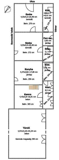 Tisztelt Érdeklődő!Ha olyan otthont keres, ahol a nyugalom és a kényelem egyszerre jelen van, akkor ez a csanádpalotai családi ház éppen Önnek szól.Az Asztalos P. Kálmán utcában található ingatlan mindössze pár percre van a városközponttól – autóval és kerékpárral is pillanatok alatt elérhető minden, amire a mindennapokban szüksége lehet.A vegyes falazatú, 106 m²-es ház két tágas szobával, konyhával, kamrával, fürdőszobával, közlekedőkkel és előszobával várja új tulajdonosát. A helyiségek burkolatai igényesek: a szobákban laminált padló, máshol járólap, a kamrában pedig betonburkolat található. A fűtés gázkazánnal megoldott radiátorokon keresztül, amely a meleg vizet is biztosítja, így minden adott az otthonos, kényelmes mindennapokhoz.A ház, részben megújult, a kamra és a hátsó közlekedő befejezésre vár. A felújított részen már korszerű műanyag nyílászárók lettek beépítve, míg a még befejezésre váró területeken a régi fa ablakok és ajtók maradtak meg.Az ingatlan teljes közművel rendelkezik: a villamosenergia, a vezetékes víz, a csatorna és a gáz mind be van kötve, így új tulajdonosnak nem kell további beruházásokkal számolnia.A 842 m²-es telek mérete ideális: elég nagy ahhoz, hogy kényelmesen élhessen, mégis könnyen gondozható. Az udvaron fedett terasz és tároló is található, bár ezek későbbi bontása elképzelhető. Az ingatlan folytatásában egy 91 m²-es, téglaépítésű, betonozott tároló kapott helyet, amely sokrétűen hasznosítható, akár műhelynek, akár hobbiszobának is.Energetikai tanúsítvány: vanEnergetikai besorolás: GCO2 kibocsátás: GA ház 90 napos határidővel költözhető.Ha élhető, csendes környezetben szeretne otthonra találni, ne habozzon!Hívjon most, és foglaljon időpontot a megtekintésre!Csanádpalotáról bővebben itt: http://www.csanadpalota.huLegyen tisztában pénzügyeivel, mielőtt elkötelezi magát! Ebben díjmentesen az Ön rendelkezésére áll bankfüggetlen hitelközvetítőnk.Vevőinket profi és kedvező díjazású ügyvédi háttérrel is segítjük a szerződéskötés során.Az ingatlanról rövid bemutató videó is készült. Ha ezt a hirdetést az Otthon Centrum weboldalán nézi, akkor a videó azonnal indítható a képgaléria elején. Ha egy másik weboldalon találta ezt a hirdetést, kérem, nyissa meg az Otthon Centrum weboldalát, kattintson a „Regisztrációs szám keresése” menü pontra, és írja be ezt a regisztrációs számot a keresőbe: H509305 Itt meg tudja tekinteni az ingatlanról készült videót és még több képet, vagy írjon nekem, és szívesen elküldöm a felvételt, képeket.#otthoncentrummako #makoiingatlan #csanadpalotaeladohaz #ingatlan #otthoncentrum #eladohaz #ingatlanpiac #nyugalom #hagymatikum #forsale #oc #hitel #ocmako #biztositas #realestate #veledmindenlepesnel #kerteshaz #csaladihaz #ingatlankozvetites #almokatepitunk #falusicsok
