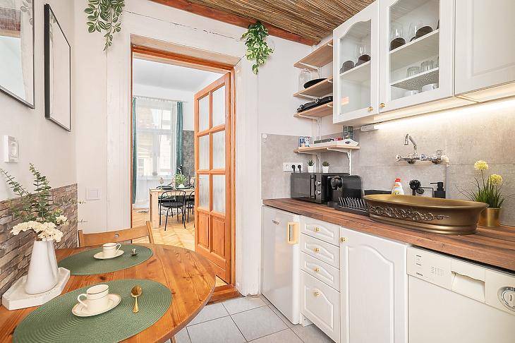Kiadó lakás Budapest VII. kerület, Jósika utcaCsendes, de fiatalos lakóközösségben, folyamatosan fejlődő, rendezett lépcsőházban kínálunk kiadásra egy teljeskörűen felújított, gépesített és modernül berendezett lakást.A lakás kényelmes, világos és ízlésesen berendezett, minden megtalálható benne, amire a mindennapokban szükség lehet – ide valóban csak egy bőrönddel kell érkezni.A lakás azonnal költözhető, két havi kaució, tárgyhavi lakbér és a közjegyzői díj fele megfizetése mellett.Dohányzás nem megengedett, kisállat megbeszélés szerint hozható.A környék kiváló infrastruktúrával és közlekedéssel rendelkezik: néhány perc sétára található a Blaha Lujza tér, az M2-es metró, több villamos- és buszjárat (4-6-os villamos, 7-es buszcsalád), így a belváros bármely pontja gyorsan elérhető.A közelben számtalan bolt, étterem, kávézó, fitneszterem és egyetem található, így fiatal pároknak, diákoknak vagy akár egyedülállóknak is ideális választás.