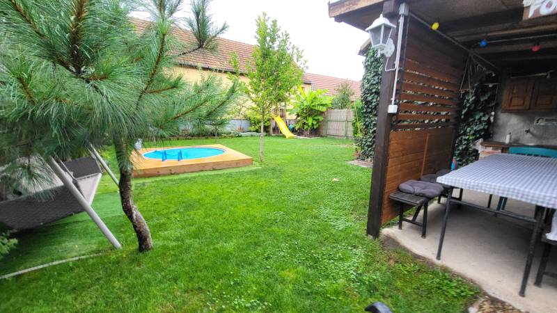 Debrecen kedvelt belvárosi részén eladó egy kitűnő állapotú és elrendezésű, 90 m²-es, napfényes házrész önálló terasz kapcsolattal. -beton alapon 50 cm-es tégla falazat +10 cm-es hőszigetelés,-új tetőszerkezet betoncserép héjazattal-felújított elektromos hálózat-műanyag nyílászárók, redőny, klíma-fűtése: kondenzációs kazánnal-90 m² alapterület + 11 m² terasz-76 m² saját pince (több helyiség kialakítással, sportolásra, borospincének, stb)-160 m² elkerített, saját parkosított kert öntözőrendszerrel, 240x90-es süllyesztett medencével-20 m²-es faszerkezetes garázs-filagória sütőhellyelTökéletes infrastruktúra, belvárosi lokáció, minden a közelben. Csendes környék, kellemes otthon.