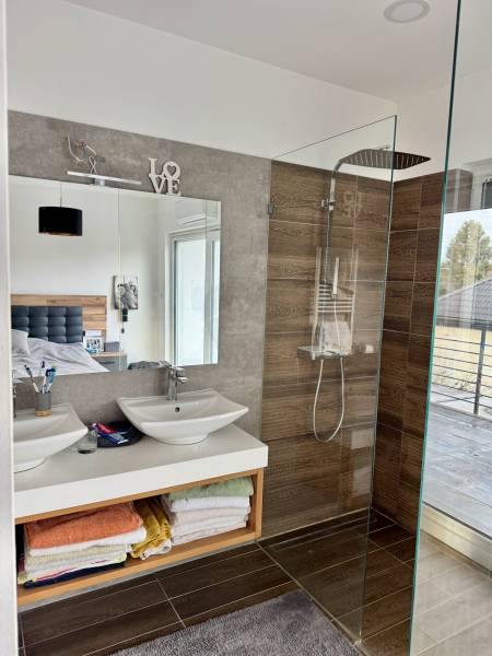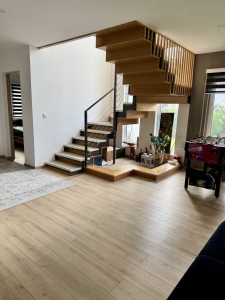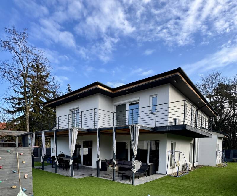 Szeretne egy modern, biztonságos és energiatakarékos otthont? Dunakeszi csendes, ám jól megközelíthető részén kínáljuk eladásra ezt a különleges könnyűszerkezetes családi házat, amely a legmodernebb technológiákat és maximális kényelmet kínálja!Az ingatlan főbb jellemzői:Könnyűszerkezetes acél építési technológia:o 20 cm belső és 10 cm külső szigetelés habbal kiegészítve, horganyzott acélmerevítéssel.o Tűzálló, földrengésbiztos, rovartaszító kivitel.Teljes alapterület: 240 nm, két szinten:o Alsó szint: 150 nm.o Felső szint: 90 nm + körbefutó terasz.Telek mérete: 500 nm.Belső elosztás és kényelmi funkciók:Alsó szint:o Tágas amerikai konyhás nappali étkezővel, világos terek és közvetlen kertkapcsolat.o Vendégszobao Modern fürdőszobao 36 nm-es, fűtött garázs 2 autó számára.Felső szint:o 2 különálló hálószoba, mindegyikhez saját fürdőszoba tartozik.o Gardróbszoba, amely könnyen átalakítható egy harmadik hálószobává.o Körben panorámás terasz, amely különleges szabadtéri élményt nyújt.Prémium műszaki megoldások és extra felszereltség: Minden szobában klíma, mely biztosítja a nyári komfortot. Fűthető medence a kikapcsolódásért minden évszakban. Teljesen elektromos fűtés, napelem kiépítéséhez szükséges engedély már rendelkezésre áll. Minden nyílászáró sávrolóval felszerelt, az otthon biztonságáról pedig riasztórendszer, illetve kamerarendszer gondoskodik. Teljes berendezéssel együtt eladó, ízlésesen berendezett, azonnal költözhető állapotban.Kivételes lokáció:Dunakeszi nyugodt környékén, a városközponthoz közel, de mégis csendes, zöldövezeti elhelyezkedéssel. Közel a szolgáltatásokhoz, iskolákhoz, óvodákhoz, és a főváros is könnyen elérhető.