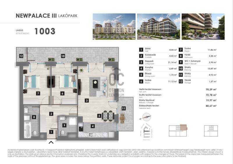 Projekt bemutatásaNew Palace III. ütemA lakópark a XIII. kerület kertvárosias részén épül, a Duna Pláza vonzáskörzetében, 10 perc sétára a 3-as Metró Gyöngyösi utcai megállójától.A földszint + 13 emelet magas épületet elegáns, kertépítők által tervezet parkok veszik körül. A zárt, csak a társasház lakói által megközelíthető udvaron fákkal, cserjékkel tarkított, füvesített zöldkert kerül kialakításra.A lakáskínálat az egy szobás garzonlakásoktól a nappali + négy hálószobás lakásokig terjed, amelyek fűtés és melegvíz ellátása a jövő elvárásait is figyelembe véve környezetbarát, hőszivattyús mennyezeti hűtő, -fűtő rendszerrel megoldott.Vevőink bőséges kollekcióból választhatnak meleg- és hideg burkolatokat, illetve a beltéri látszó igényeket. A jelen adatok tájékoztató jellegűek, ezért a Beruházó (sem a hirdető) azok változásával, vagy bármely attól való eltéréssel kapcsolatban semmilyen kötelezettséget, vagy felelősséget nem vállal.Az alaprajzokon ábrázolt berendezési tárgyak és bútorok, a burkolatok megjelenése nem képezi a szerződés tárgyát. A pontos felszereltségről a műszaki leírásban olvashat bővebben.Az aktuális lakáskínálatról és árakról érdeklődjön telefonon!