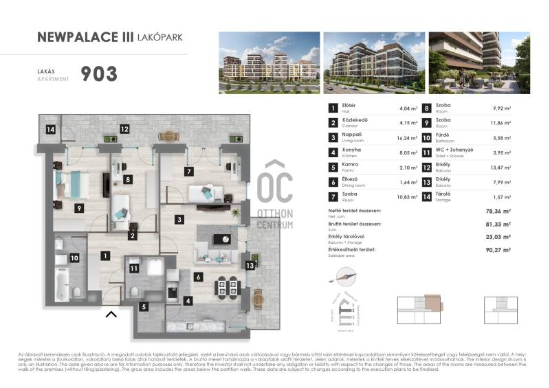 Projekt bemutatásaNew Palace III. ütemA lakópark a XIII. kerület kertvárosias részén épül, a Duna Pláza vonzáskörzetében, 10 perc sétára a 3-as Metró Gyöngyösi utcai megállójától.A földszint + 13 emelet magas épületet elegáns, kertépítők által tervezet parkok veszik körül. A zárt, csak a társasház lakói által megközelíthető udvaron fákkal, cserjékkel tarkított, füvesített zöldkert kerül kialakításra.A lakáskínálat az egy szobás garzonlakásoktól a nappali + négy hálószobás lakásokig terjed, amelyek fűtés és melegvíz ellátása a jövő elvárásait is figyelembe véve környezetbarát, hőszivattyús mennyezeti hűtő, -fűtő rendszerrel megoldott.Vevőink bőséges kollekcióból választhatnak meleg- és hideg burkolatokat, illetve a beltéri látszó igényeket. A jelen adatok tájékoztató jellegűek, ezért a Beruházó (sem a hirdető) azok változásával, vagy bármely attól való eltéréssel kapcsolatban semmilyen kötelezettséget, vagy felelősséget nem vállal.Az alaprajzokon ábrázolt berendezési tárgyak és bútorok, a burkolatok megjelenése nem képezi a szerződés tárgyát. A pontos felszereltségről a műszaki leírásban olvashat bővebben.Az aktuális lakáskínálatról és árakról érdeklődjön telefonon!