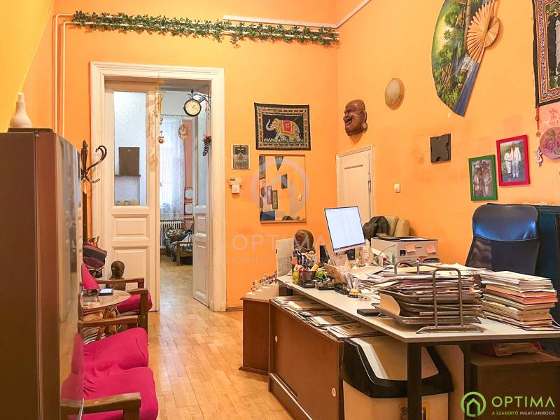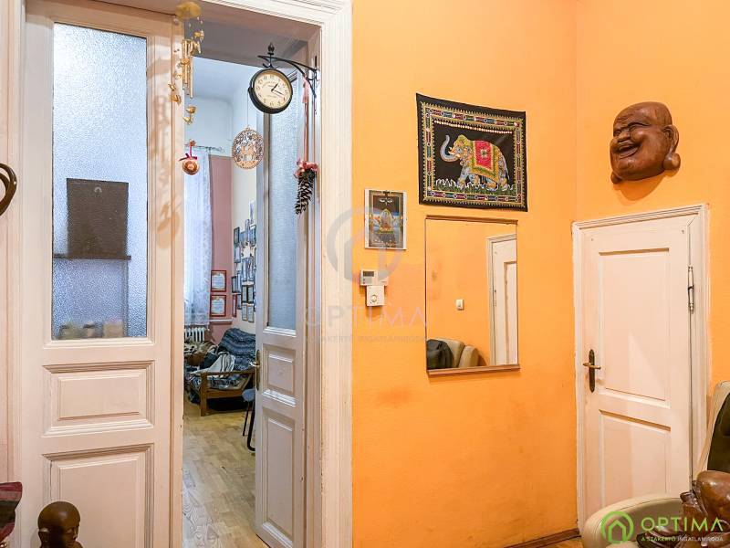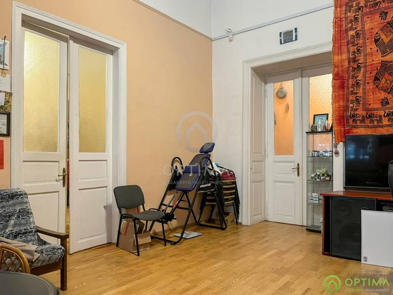 TÁGAS POLGÁRI LAKÁS A II. JÁNOS PÁL PÁPA TÉR MELLETTKözvetlenül a II. János Pál pápa tér szomszédságában egy 94 m²-es, nagypolgári stílusú, földszinti lakás várja új tulajdonosát. A klasszikus belmagasság és a tágas terek eleganciája modern lehetőségekkel párosul.A lakás kiváló adottságokkal rendelkezik: 4,35 méteres belmagasságának köszönhetően több galéria is kialakításra került, amelyek praktikus tárolási funkciót látnak el. A lakás elosztása ideális: tágas előszoba, két nagy méretű, világos szoba, külön konyha, fürdőszoba, WC, tároló és egy hálófülke szolgálja a kényelmet. A tér átrendezésével akár több önálló lakás kialakítására is van lehetőség.Az ELEKTROMOS HÁLÓZAT CSERÉJE és az ÚJ CIRKÓ KAZÁN beszerelése már megtörtént, így a műszaki alapok rendben vannak, a belső terek pedig szabadon formálhatók.A környék folyamatosan fejlődő, karakteres városi rész, amelyet zöld parkok, új kávézók és megújuló környezet jellemez – ideális választás saját otthon vagy befektetés céljára is.A KÖZLEKEDÉS kiváló, M4 metró, villamos- és buszjáratok néhány perc sétával elérhetők. Az utcában a PARKOLÁS KÖZTERÜLETEN LEHETSÉGES, és jellemzően könnyen található szabad hely.Az ingatlan TEHERMENTES, 1/1 TULAJDON, így gyorsan birtokba vehető.Irodának, rendelőnek, befektetésnek vagy egy tágas családi otthonnak is remek választás.A megtekintés telefonos egyeztetését este és hétvégén is szívesen intézem.