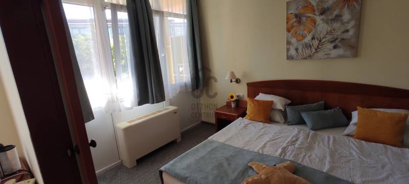A Karos Spa wellness szálloda apartmanházában 2. emeleti igényes üdülőegység keresi új tulajdonosát.A keleti fekvésű ingatlan ablakai és terasza a szálloda központi parkjára néz. Az épület akadálymentesített, liftekkel felszerelt.A közös költség tartalmazza az ingatlan fűtés-hűtésének, közös részek takarításának, internetszolgáltatásnak a díját.A szálloda fő épülete, wellness részlege föld alatti folyosón közelíthető meg.A lakók a szálloda összes szolgáltatását kedvezményes áron vehetik igénybe.A tágas nappali kényelmes pihenést biztosít. A nagyméretű hálószobában franciaágy és beépített szekrény található.A fürdőszobában termálvizes kád és külön zuhanyfülke is található. A különálló mellékhelyiségben bidé is van. A beépített konyha kisebb étkezések előkészítését teszi lehetővé.Az ingatlan tehermentes, rövid határidővel birtokba vehető, akár saját részre, akár kiadásra is tökéletesen alkalmas.A zalakarosi gyógy és élményfürdő minden évszakban nagyszerű szórakozást, pihenést nyújt kicsiknek és nagyoknak egyaránt.Zalakaros ideális hely a környék felfedezésére, Keszthely, Hévíz, a Balaton 30 km-re, Nagykanizsa 16 km-re található.Zalakaroson rengeteg szórakoztató program elérhető a családok, párok részére. Hívjon bizalommal, egyeztetés alapján rugalmasan megtekinthető ez a remek ingatlan.