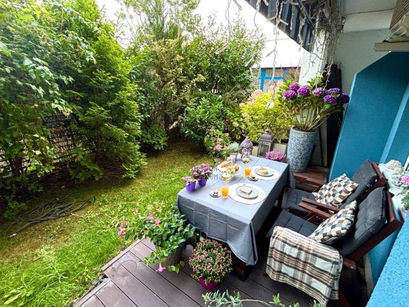 KERTKAPCSOLATOS 2 SZOBÁS LAKÁS ELADÓ A III. KERÜLETI METRODOM YOUNG LAKÓPARKBANGYÖNYÖRŰ LAKÁS+ SAJÁT KERT+ SAJÁT FELSZÍNI BEÁLLÓ + PRIVÁT TÁROLÓ!KIHAGYHATATLAN LEHETŐSÉG!!!MOST TULAJDONOSA LEHET ENNEK A SZUPER ELOSZTÁSÚ EGYEDI LAKÁSNAK!Eladásra kínálok Csillaghegy és Békásmegyer határán az egyik legkedveltebb lakóparkban, egy 38 nm-es + 15 nm-es terasszal és 30 nm-es saját kerttel rendelkező lakást.Az épületet 2016-ban adták át. A Metrodom Young olyan lakókörnyezetet és életminőséget biztosít a tulajdonosoknak mellyel messze kiemelkedik a szokványos lakóházak közül. A két lakóépület mellett külön közösségi épületrészben helyezkednek el a tárolók, a bicikli- és a robogó-garázs, valamint más, exkluzív szolgáltatásokat nyújtó létesítmények, melyek szinte egy szálloda kényelmével ruházzák fel a lakóparkot.A lakás előnye hogy teljeskörűen felújított, itt minden gyönyörű és minőségi! A képek magukért beszélnek!Az egyedi életérzést a saját kertkapcsolat adja, zöld növényzete igazi privát szférát biztosít.A kertben egyedi öntözőrendszer lett kialakítva.A tágas amerikai konyhás nappaliban hűtő fűtő klíma biztosítja a hőérzetet.Ezen felül fűtéséről házközponti kazán gondoskodik egyedi mérőkkel ellátva, radiátoros hőleadással. 2 külön nyíló szobával rendelkezik,a hálószobában külön gardrób is kialakításra került.A konyhája minden igényt kielégítő alapos tervezéssel és kivitelezéssel készült magas minőségben, teljeskörűen gépesítve.Szép konyhabútor beépített sütővel, mikróval, indukciós főzőlappal, dizájn elszívóval rendelkezik.Műanyag nyílászárók, szúnyoghálóval és alumínium redőnnyel ellátva, biztonsági bejárati ajtó.Felújítást nem igényel.Megegyezés után gyorsan költözhető.Alacsony rezsiköltség!A házban központi kazán biztosítja a fűtést és a meleg vizet, a lakás hőmérsékletét pedig mindenki igényei szerint szabályozhatja (minden fűtőtestet automata termosztátos szeleppel láttak el), az egyedi hőmennyiségmérők leolvasása rádióhálózaton történik. Az egyedi villany- és vízóráknak köszönhetően mindenki csak a saját fogyasztását fizeti.A Duna-Part pár perc sétával elérhető.A közelben minden megtalálható: iskolák, óvodák, gyógyszertárak, orvosi rendelő, élelmiszerüzletek, piac, játszóterek, kültéri edzőpark, éttermek, kávézók...A közlekedés is kiváló:34-es,134-es, 934-es,960-as buszok, H5-HÉV,A lakópark szolgáltatásai a következők:- finn- és infraszauna- műfüves foci- és kosárpálya- csocsó- és kártyaasztal- teraszos klubhelyiség- kondi és kardióterem- ping-pong terem- női és férfi öltözők zuhanyzók- fás őskert padokkal grillezési lehetőséggel.- üdítő és kávé automata- mosoda- beltéri bicikli-parkoló- ingyenes WiFi- 24 órás portaszolgálat- kamerarendszer- Proxy leolvasó belépőrendszerHa egy olyan életre vágyik mint ha egy luxus hotelben nyaralna, akkor mielőbb jelentkezzen egy személyes megtekintésre, mert biztos nem lesz sokáig az eladó lakások között.Rugalmasan megtekinthető!Várom hívását!