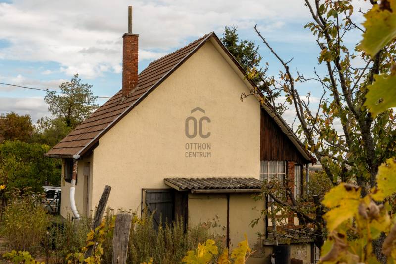 Romantikus nyugalom a varázslatos pázmándi szőlőhegyenRákanyarodunk a szőlőhegyre vivő útra, és megyünk. Eleinte aszfalt, megyünk felfelé, kétoldalt szőlők, kertek, házikók, aztán az út zúzott kövesre vált, közeleg a dombtető, ahol már az erdő az úr, de még előtte jobbra kanyarodunk és megékezünk a nyeles telekként működő kis birtokra. Gondozott kertek, szőlőültetvények, csinos présházak övezik utunkat. Ápoltabb vidék, mint amire számítunk és kicsit mostohább, mint amit a szőlő és bor megérdemel.A 707 nm-es telken 1972-ben épült egy masszív présház és alatta a betonfödémes pince. Azóta minden évben bort érlel ez a pince, de megérett az idő a tulajdonosváltásra.A házikó egy klasszikus egy szoba + konyhás beosztású, masszív szerkezetű, tégla falazatú miniház. A korábbi erkély mára már üvegezett veranda, ahol az étkezőasztal kapott helyet és csodálhatjuk Pázmánd lankáit, a tájat. Fürdőszoba nincs, de kialakítható, a víz fúrt kútról lenne megoldható. Jelenleg csapadékvíz gyűjtésre van lehetőség. A villany be van vezetve. Fűtése jelenleg is megoldott egy kis vaskályhával, épített kéménnyel.A telek egy külön helyrajzi számon bejegyzett úton közelíthető meg, mely tulajdonjogilag a felső szomszéddal közös 50-50% arányban, a telek adásvételével egyidejűleg átadó a vevőnek, ára benne van a vételárban.A sétával bejárható környék a helyiek kirándulóhelye, főbb érdekességei a Pázmándi sziklák kilátópont, Szent Vendel kőszobra, Szent Orbán faszobra, valamint borral kínáló pincék és erdős-sziklás sétautak.Ez a kisház a nomád körülményektől vissza nem riadó természetkedvelők érdeklődésére tarthat számot. Egy kis korszerűsítéssel egész éves lakhatásra is alkalmassá tehető, és kis méreteinek köszönhetően kis rezsiköltségekkel fenntartható.Ez az ingatlan a \"Felező csomag\" megbízási portfólióhoz tartozik. Részletek az Otthon Centrum weboldalán.