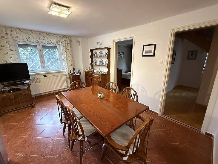 SZENTENDRÉN ELADÓ EGY KÉTGENERÁCIÓS ÖNÁLLÓ CSALÁDI HÁZ!A KÖRNYÉK:Az ingatlan egy csendes, jó lakóközösséggel rendelkező környezetben helyezkedik el, a buszmegállótól csupán 2 perc sétára, ahonnan busszal könnyen, 14 perc alatt megközelíthető a szentendrei HÉV megálló, illetve a városközpont is. A HÁZ JELLEMZŐI:- Telek: 980 nm.- A ház hasznos alapterülete 150 nm.- Plusz egy 20 nm-es fedett kocsibeálló, de a telken belül 3-4 autó is elfér.- Az 1980-as években épült, B30-as téglából, 10 cm Dryvit szigetelést kapott.- 2004-ben az ingatlan felújításon esett át.- A tetőt zsindely fedi, 20 cm-es kőzetgyapot szigeteléssel.- A fűtésért egy Bosch kombi gázkazán felel, ami radiátorokon adja le a meleget, csövezete réz.- Plusz a felső emeleti nappaliban megtalálható egy hangulatos kandalló is.- A villanyhálózat vezetékezése réz.- Kétrétegű, műanyag nyílászárók, mindenhol redőnnyel, illetve szúnyoghálóval felszereltek.- Riasztórendszer került kialakításra.FINANSZÍROZÁS:Tehermentes, banki finanszírozással is megvásárolható, melyben irodánk ingyenes tanácsadással áll rendelkezésükre! VEVŐINK RÉSZÉRE A KÖZVETÍTÉS DÍJTALAN! A hirdetésben szereplő adatok tájékoztató
