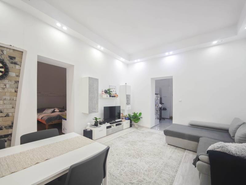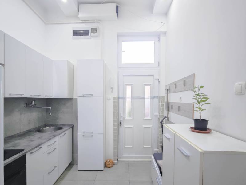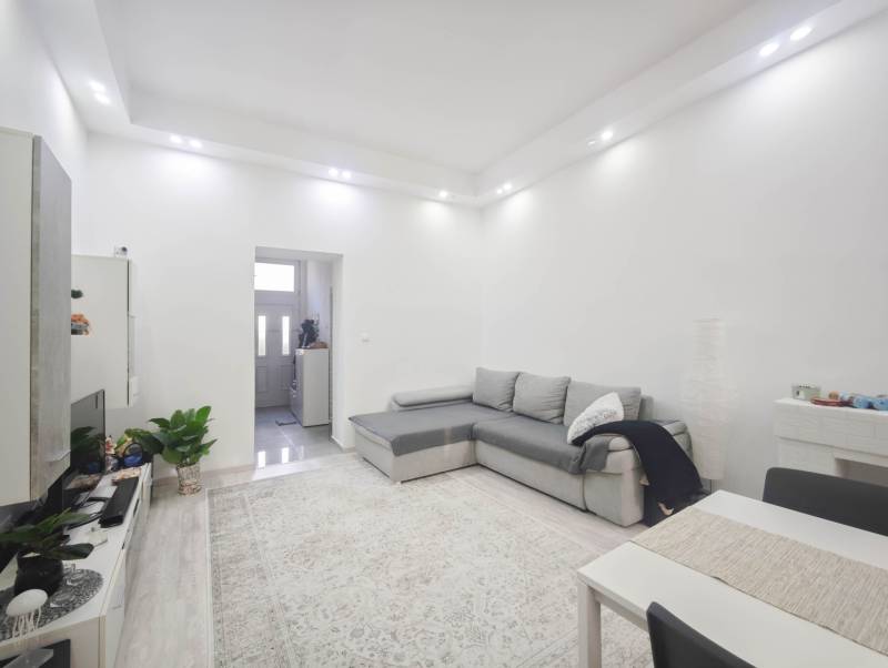Új tulajdonosát keresi Újpesten egy csendes, felújított, földszinti lakás jó közlekedéssel és infrastruktúrával. Ha szép állapotú, alacsony fenntartási költségű, élhető terekkel rendelkező ingatlant keres, akkor ezt ne hagyja ki!A KÖRNYÉKRŐL:- Budapest IV. kerülete, Újpest, Erkel Gyula utca.- Funkcionálisan jól ellátott környék, fejlődő kerületi központ közelében.- Gyakorlatilag Újpest-Központ vonzáskörzete, gyalog, autóval és tömegközlekedéssel is gyorsan elérhető.- Több buszjárat megállója megtalálható sétatávolságban, a legközelebbi buszmegálló 300 méter.- Újpest-Központ és az M3 metró 7 perc busszal, 13 perc gyalogosan.- 10 perces körön belül elérhető minden, ami a napi élethez szükséges.A HÁZRÓL:- 1960-ban épült, 16 lakásos, földszintes, téglaépület.- Kívül-belül átlagos állapotú.- Rendezett közös belső udvarral rendelkezik.A LAKÁSRÓL:- Földszinti, 48 m2-es, 2 szobás, felújított ingatlan.- Kifejezetten csendes és hangulatos, fiatalos otthon.- Rendkívül praktikus elrendezésű, modern kialakítású, élhető terekkel rendelkezik.- Jelenlegi felosztása: előszoba-konyha, nappali + 1 hálószoba, zuhanyzós fürdőszoba-wc.- A hálószoba a nappaliból nyílik, a szobák az utcára néznek.- A nyílászárók részben műanyagok, részben modern fa szerkezetű ablakok.- A lakásban lévő burkolatok modern színvilágúak és jó minőségűek.- A lakáshoz tartozik egy 6 m2-es saját pincerekesz.AZ INGATLAN MEGTEKINTHETŐ:- személyesen,- online személyes bejelentkezéssel.FINANSZÍROZÁSI KÉRDÉSEKBEN ONLINE ÜGYINTÉZÉSSEL IS SEGÍTÜNK:- Bank-független hitelcenterünk díjmentesen versenyezteti minden bank és hitelintézet ajánlatát.- Önnek nincs más dolga, mint beszélgetni munkatársunkkal, majd a megversenyeztetett ajánlatokból kiválasztani a hosszútávon is a legmegfelelőbb konstrukciót.- Szakértőink 20 éves szakmai tapasztalattal és egyedi igényekre szabott, fogyasztóbarát lakáshitelekkel, babaváró hitellel, teljes körű CSOK PLUSZ és OTTHON START program ügyintézéssel várják Önt.- Előre egyeztetve akár a normál munkaidő után is.Kifejezetten ajánlom pároknak, vagy egyedülállók részére. Könnyű megközelíthetősége és a környék ellátottsága miatt bármely korosztály számára kényelmes otthon lehet.További információért és megtekintési időpontért hívjon bizalommal.