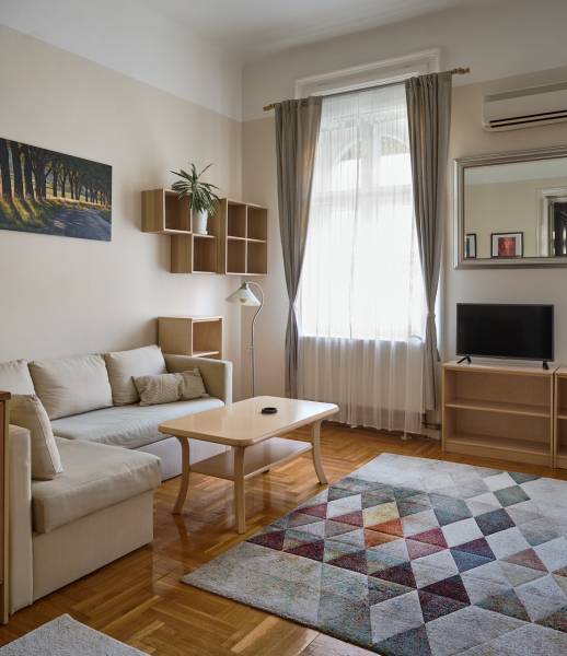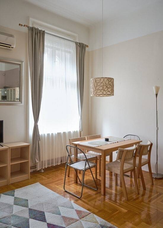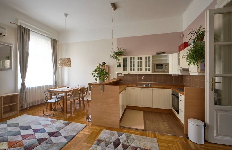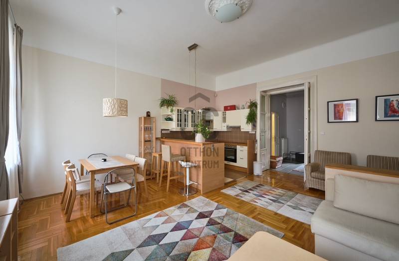 Eladó gyöngyszem Terézváros szívében, az Oktogon közelében!Eladásra kínálunk a 6. kerület egyik legkedveltebb részén, Terézvárosban, egy teljes körűen felújított, negyedik emeleti, 55 m2-es, 2 szobás lakást. Az 1886-ban épült, négyemeletes, liftes társasház kiváló állapotban van, elegáns hangulatát a múlt század bája és a modern életstílus tökéletes harmóniája jellemzi.A lakás tágas amerikai konyhás nappalija világos és barátságos, ablakai egy csendes mellékutcára néznek, így a központi elhelyezkedés ellenére is nyugodt, otthonos hangulatot biztosít. A hálószoba szintén a ház csendes belső udvarára néz, ideális pihenésre. A zuhanyzós fürdőszobában található a modern kombi gázkazán, amely a lakás fűtését és melegvíz-ellátását biztosítja.A lakás skandináv nyírfából készült, egyedi bútorokkal van berendezve, amelyek igény szerint külön megvásárolhatóak – ezek az enteriőr természetes, világos eleganciáját erősítik.Elhelyezkedés:A környék Budapest egyik legjobb adottságú városrésze: néhány lépésre található az Andrássy út, az Operaház, valamint számos neves színház és kávézó. Az ellátottság elsőrangú – a luxus butikoktól a mindennapi bevásárláshoz szükséges üzletekig minden megtalálható. A közlekedés szintén kiváló: pár perc alatt elérhető a Deák tér, a Hősök tere, a Blaha Lujza tér és a budai oldal is.Ez a lakás tökéletes választás mindazoknak, akik egy meghitt, igényesen felújított otthonra vágynak Budapest kulturális és történelmi központjában.Hívjon bizalommal, és tekintse meg ezt a varázslatos otthont – garantáltan első látásra beleszeret!