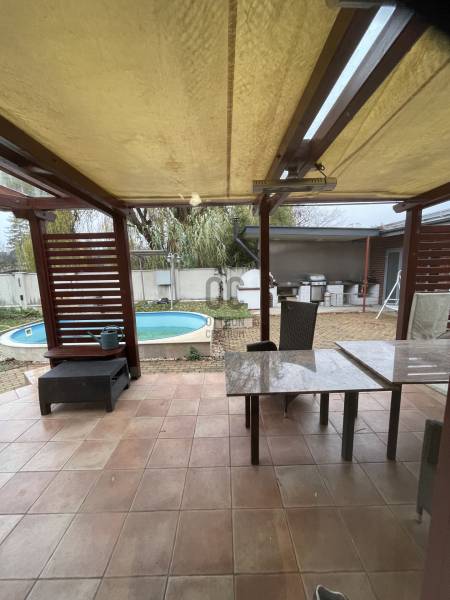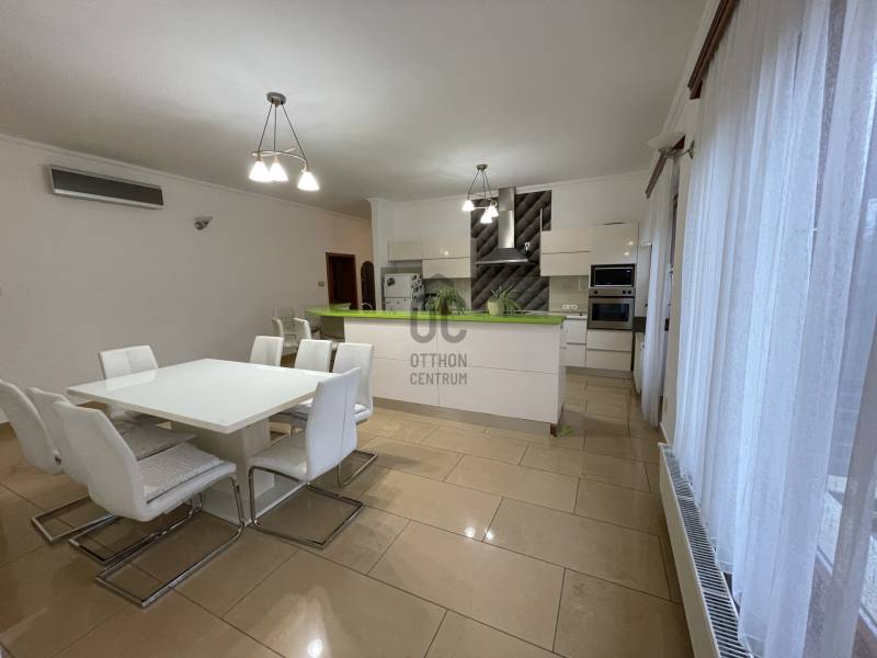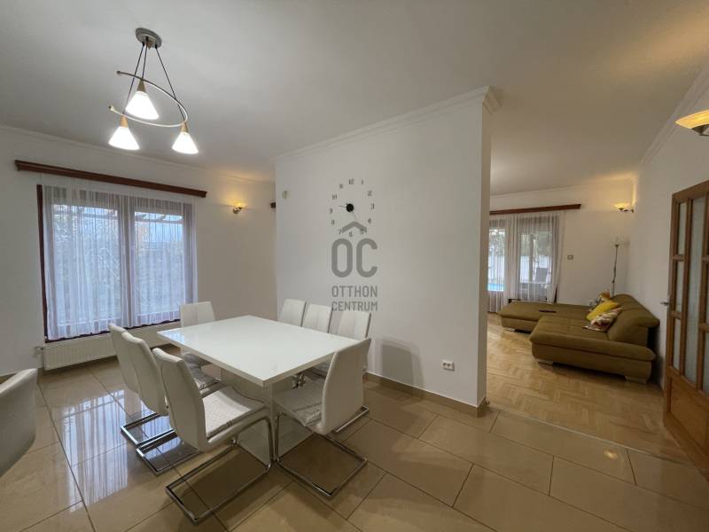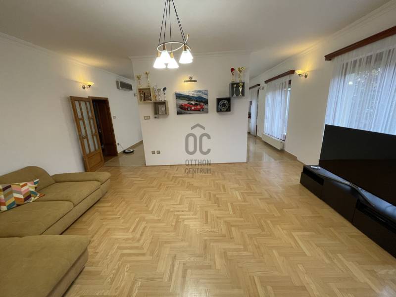 Ha Ön egy igazán élhető terekkel rendelkező, minimális költséggel fenntartható családi házat keres Debrecenben, akkor ne keressen tovább, mert megtalálta!Debrecen Biharikert városrészben eladó ez a nettó 200 m2 alapterületű, nappali+ 3 szobás, medencés , földszintes családi ház, amely 866 m2-es telken fekszik.Helyiségei: hatalmas, világos, hangulatos konyha-étkező-nappali, 3 különnyíló szoba, 2 fürdőszoba (zuhanyzós és kádas), 2 wc, kamra, mosókonyha, gépészet, gardrób, dupla garázs.A családi ház melegét egy 2 éve cserélt kondenzációs gázkazán biztosítja radiátoros hőleadókkal, a nyári kellemes hőmérsékletről hűtő-fűtő klíma gondoskodik. Minőségi külső fa nyílászárói aluredőnnyel felszereltek, a nappaliban motoros irányítással.Az ingatlan különlegességei:- 12 kW napelem rendszer, amely gyakorlatilag ellátja az egész ház energia fogyasztását- a kertben megtalálható egy hőszivattyúval ellátott fűthető medence, továbbá egy fedett kültéri konyha kemencével, mosogatóval- 2 nagyméretű, üvegtetővel fedett terasz- öntözőrendszer- kamerarendszer- 3 m belmagasság- az udvaron található még egy kb. 17 m2-es kis ház, amelyben konyhával, zuhanyzóval, wc-vel és tárolóval is rendelkezik, akár lakhatásra is alkalmasSétatávolságra megtalálható iskola, buszmegálló, pár perc autóval bevásárlóközpont és a belváros is könnyedén elérhető.Ajánlom mindazoknak, akik kertvárosi nyugalomra vágynak egy igazi családi házas környezetben!Irodánkban ingyenes hitelügyintézéssel/ tanácsadással állunk ügyfeleink rendelkezésére!Megtekintéssel kapcsolatban keressen bizalommal!