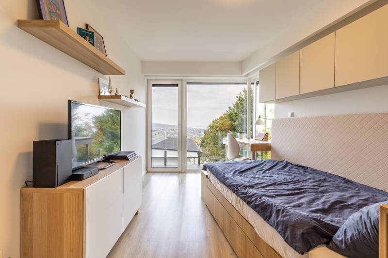 Finoman megkomponált otthon, ahol a fény és a csend egy nyelvet beszél. - Üdv itthon! RÖVID ÖSSZEFOGLALÓ Budapest III. kerületében, a méltán kedvelt, és keresett Testvérhegy a Jablonka útján vált elérhetővé ez a 2020-ben épült családi ház. Az épület háromszintes, 162 m²-es, négyszobás elrendezésű, két fürdőszobával és egy vendégmosdóval, tágas terasszal és erkélykapcsolattal, valamint saját kerttel. Fűtését gázcirkó látja el padlófűtés és radiátor kombinációjával, a nyári komfortot klíma biztosítja. A házhoz 423 m²-es kert, és két garázshely tartozik, melynek árát a vételár tartalmazza, csak úgy, mint a beépített bútorzatot, és gépesítést. LOKÁICIÓ ÉS KÖRNYEZET A Jablonka út környéke a III. kerület egyik legkedveltebb családiházas övezete – közel a csodás hegyvidéki erdőkhöz, kiránduló helyekhez, - mint a Virányos-nyereg, a Vihar-hegyi kilátópont vagy a híres Guckler Károly-kilátó - mégis néhány percnyire a várostól. Napjaink legkeresettebb lokációi bírnak ezzel a két fontos tulajdonsággal. Az utóbbi évtizedben nem várt módon felértékelődött a természetközeli helyek értéke, azonban a modern életstílus megköveteli, hogy könnyen és gyorsan elérhető legyen a város annak minden szolgáltatásával. Ez a kombináció verhetetlen napjaink ingatlanpiacán, és a Jablonka út ennek egyik ékes példája. Néhány perc alatt elérhető az Árpád -híd és a Margit sziget, a Reggel, amikor elindul az ember otthonról, egy ismerős arc köszön az utcán – ez a fajta közvetlenség jellemzi a környéket. A mindennapi élethez szükséges szolgáltatások (boltok, gyógyszertár, iskola, óvoda) minden itt van kézközelben. ÉPÜLET A 2020-ben épült ház kortárs, visszafogott eleganciát képvisel. Világos homlokzatát grafitszürke részletek és üvegkorlátok tagolják, a tágas nyílászárókon át pedig minden évszak a maga hangulatában írja újra az otthon képét. Tavasszal a kert ébredése az első fényekkel együtt indul: az ablakokon beáradó friss zöld illat a ház minden szintjét átjárja, a nappali teréből nézve a fák rügyezése lassan kibontott festménynek tűnik. Nyáron a terasz a nappali természetes folytatásává válik – a kert zöldje visszatükröződik az üvegfelületeken, a levegőben grillezés, friss fű és esti bor illata keveredik. Ilyenkor a ház valóban együtt él a kinttel. Ősszel az erdő közelsége új színt hoz: a domboldal aranyló levelei a homlokzatról visszaverődő fényekkel játszanak, a teraszról kilépve érezni a nedves föld és a lehulló levelek illatát – ez a ház ilyenkor különösen otthonos, bensőséges. Télen a panoráma megváltozik, a kert letisztul, a ház belsejéből pedig a kinti csend még mélyebbnek tűnik. A meleg fények, a padlófűtés finom hője és a közös nyugodt esték meghitt hangulatot teremtenek – ez az időszak, amikor az otthon szó valódi értelmet nyer, amire évekkel később is jó visszaemlékezni. Az épület minden részletében az arány és a funkcionalitás találkozik: a garázs két autó számára kínál fedett helyet, a kert pedig teraszosan követi a domboldalt, így a ház minden szintjén megmarad a kapcsolat a zölddel és a kilátással. A ház nemcsak egy hely, hanem egy évszakokon átívelő élmény, ahol a természet ritmusa és az emberi élet ritmusa egymásra hangolódik. AZ OTTHON BELSŐ VILÁGA Belépve a térbe, az első benyomás a nyugalom és az arányok rendje. Világos tónusok, meleg fa felületek és finoman textúrált anyagok fonódnak össze, mintha minden részlet azt suttogná: „jó itthon lenni”. A földszint a családi élet természetes központja. A nappali, az étkező és a konyha egyetlen áramló térben kapcsolódik össze — ott, ahol az illatok, a fények és a nevetések találkoznak. A modern, beépített konyha a sötét és világos fa árnyalataival játszik, az étkezősziget körül pedig mindig történik valami: a reggeli készülődés izgalma, a délutáni beszélgetés biztonsága, közös vacsorák hangulata ad értelmet a funkcionalitásnak. A felső szint csodás panorámával és erkélykapcsolattal kényezteti a család minden tagját, itt három külön bejáratú hálószoba és két fürdőszoba kapott helyet. A gyerekszobákban van hely a rendnek és a játéknak is, szülői háló pedig a kert felé fordul — itt a csend nem üresség, hanem nyugodt megérkezés. A fürdőszobák márványhatású burkolatai és lágy fényei az esti rituáléknak ad letisztult, kellemes, tiszta teret. A padlófűtés és radiátor kombinációja télen finom, egyenletes meleget ad, a klíma pedig nyáron is hűvösen tartja a tereket. A gardrób és a háztartási helyiség csendben végzi a dolgát – támogatja a családot abban, hogy minden a helyén maradjon, miközben az élet zajlik körülötte. ÖSSZEGZÉS ÉS KAPCSOLATFELVÉTELEz az otthon a modern családi élet kényelmének esszenciája – egyszerre elegáns és természetes, praktikus és meghitt. Aki ide belép, az nemcsak házat lát, hanem egy olyan életteret, ahol minden részlet a kiegyensúlyozott életet szolgálja. Ha szeretné megtapasztalni, milyen érzés, amikor az otthon valóban az élet középpontja, keressen bizalommal, és szívesen bemutatom személyesen ezt a különleges házat a Jablonka úton.
