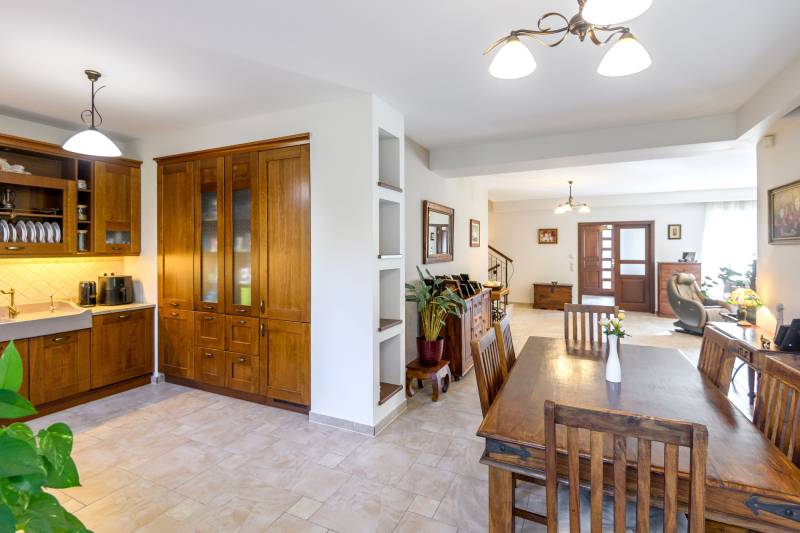 Sopron egyik legkedveltebb részén, az Ágfalvi úti lakóparkban kerül eladásra egy 2010-ben épült, 1238 m²-es telken álló, különleges családi ház, amely az igényesség és a gondosan megtervezett élettér tökéletes példája.A HÁZ JELLEMZŐI- nettó lakóterület: 260 m²- építés éve: 2010- téglaépítésű, minőségi anyagokból- alumínium borítású fa ablakok, tömör kőrisfa beltéri ajtók- kovácsoltvas korlát az emeletre vezető lépcsőn – igazi éke a háznak- fűtés: Vaillant turbó gázkazán, padló- és falfűtés helyiségenként szabályozhatóan- melegvíz ellátás: gázkazán + napkollektor (250 l puffertartály)- nagy teljesítményű klíma az egész ház hűtéséreTÁGAS VILÁGOS BELSŐ TEREKA földszint központja a nappali–étkező–konyha egysége, ahol a természetes fény, a fa meleg tónusai és a finom részletek együttesen teremtenek meghitt, elegáns hangulatot.A tömör fából készült, gránit munkalapos konyhabútor nemcsak stílusos, de a minőség garanciája is.A nappali közvetlen teraszkapcsolattal rendelkezik, így a kert szinte a lakótér folytatása.KÉNYELMES, ÁTGONDOLT EMELETI ELRENDEZÉSAz emeleten HÁROM HÁLÓSZOBA kapott helyet:-a szülői lakrész saját fürdőszobával és gardróbbal,- másik két szoba közös fürdőt használ,- a tágas közlekedő kellemes, világos teret biztosít.ALSÓ SZINT – kényelem és praktikusságA földszinten helyet kapott:- egy vendég- vagy dolgozószoba,- egy tágas háztartási helyiség szaunával, tusolóval és WC-vel,- valamint egy duplagarázs elektromos garázskapukkal.Minden itt van, ami a mindennapi kényelmet szolgálja – logikus elrendezésben, minőségi kivitelezésben.A KERT - MAGA A NYUGALOMAz 1238 m²-es, parkosított kert gondosan megkomponált:- robotfűnyíró,- Wellis jakuzzi - barabás téglából épített grillező és kerti konyha,- árnyas pihenősarok, ahol a zöld növények között valódi kikapcsolódás várja.- kerti faházEz a kert nem csupán szép — élettér, ahol minden nap egy kicsit nyaralás.Egy ház, ahol a részletek számítanak.Ez az otthon nem hivalkodó, hanem elegánsan kifinomult.Minden anyag, minden vonal és minden szín azt sugallja:itt a nyugalom, a minőség és a természet közelsége egyensúlyban van.ELHELYEZKEDÉSKönnyen megközelíthető kertvárosi környezetA város infrastruktúrája, iskolák, bevásárlási lehetőségek és zöld területek egyaránt elérhetők.KÖLTÖZÉSA költözés gyorsan megoldható.Ha egy olyan otthont keres, amely egyszerre sugároz eleganciát, kényelmet és természetes harmóniát,akkor ez a ház Sopronban, az Ágfalvi úti lakóparkban Önre vár.Hitelre van szüksége?Az Otthon Centrum az ország egyik legnagyobb és legmegbízhatóbb hitelközvetítőjeként, teljes körű és díjmentes hitelügyintézéssel, biztosításkötéssel áll rendelkezésére!Kérje személyre szabott ajánlatunkat Kollégáinktól!