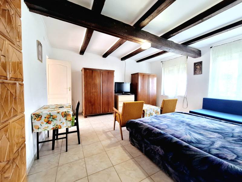 3% OTTHON START ÉS FALUSI CSOK IGÉNYELHETŐSomogy vármegyében, az M7 autópálya közvetlen közelében, Szőkedencs csendes és nyugodt környezetében kínálunk 3 szobás parasztházat eladásra, amely ideális választás lehet minden korosztály számára, akik szeretnék élvezni a vidéki élet nyugalmát és szépségeit.Az épület 3 szobával rendelkezik, kényelmes otthona lehet családoknak, de befektetési célokra is remek lehetőséget kínál. A telek mérete 2158 nm, ami elegendő teret biztosít a szabadidős tevékenységekhez, kertészkedéshez. Az ingatlanban az elmúlt évek során több felújítás történt, a leendő tulajdonos saját ízlése szerint alakíthatja ki a belső tereket. A fűtés gázkonvektorral és cserépkályhával történik, ami kényelmes és gazdaságos megoldás a téli hónapokban. Szőkedencs egy nyugodt, biztonságos település, ahol a közlekedési lehetőségek is kedvezőek. Az autóval való közlekedés egyszerű, a 7-es főút és az M7 autópálya gyors hozzáférést biztosítanak a környező városokhoz, a helyi buszjáratok lehetővé teszik a tömegközlekedést is. az ingatlan főbb jellemzői:- kiváló megközelíthetőség- csendes, természetközeli fekvés- belterület- Ingatlan nyilvántartás szerint: KIVETT LAKÓHÁZ, UDVAR, GAZDASÁGI ÉPÜLET- 76nm alapterület- 1950-es években épült vegyes falazatú, döntő többségben tégla épület- földszintes parasztház látszó gerendákkal- fa nyílászárók- cseréptető- a fűtés 2 gázkonvektorral és cserépkályhával biztosított- meleg víz ellátása villanybojlerrel történik- a fürdőszoba 2010-ben került kialakításra- a konyha kb 3 éve újult meg- kémény 3 éve lett újra rakva- jelen állapotában is egész évben lakható- az épület főképp homlokzati felújítást igényel, leendő tulajdonosa saját ízlése szerint alakíthatja ki - 2.158 nm a telek nagysága- körbe kerített- vezetékes villany, víz, gáz bevezetve, szennyvíz elvezetése zárt emésztőben történik- az udvarban található egykori tégla istálló további bővülésre ad lehetőséget (32nm)- a melléképület tetőzete felújításra került- a kert bőséges teret kínál a szabadidős tevékenységekhez, kertészkedéshez, gyümölcsös kialakításához- a telek hátsó részében akácos található- külön hátsó útról is könnyen megközelíthetőaz épület elosztása:- a lakóházban 3 különálló szoba található ( 2 háló és 1 nappali)- fürdőszoba/ WC- konyha/étkező- nagy méretű kamra, padlásfeljáróvalSzőkedencs egy csendes, barátságos 260 fős kistelepülés, ahol a természet közelsége és a friss levegő garantálja a nyugalmat. A település biztonságos, és az itt élők közössége összetartó. A közlekedés is kedvező, hiszen a közeli városok, mint például Keszthely, Marcali, Nagykanizsa kb 20 percen belül megközelíthetők autóval és tömegközlekedéssel is. Zalakaros gyógyfürdő 15 kilométerre található. A legközelebbi vasútállomás Zalakomárban elérhető. A közeli boltok, orvosi rendelő, könyvár, 2 templom és egyéb szolgáltatások pedig megkönnyítik a mindennapi életet. A Kis-Balaton közelében a falu nevezetessége a temetőben található közel 700 éves hársfa.Ez az ingatlan egy lehetőség arra, hogy egy olyan helyen éljen, ahol a természet közelsége és a csendes életvitel harmóniában találkozik. Ha Ön is szeretne többet megtudni erről az ajánlatról, várjuk hívását!Az adatok és alaprajz tájékoztató jellegű.