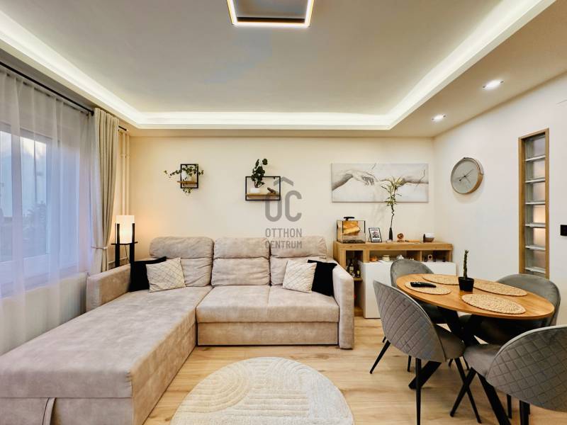 A XI. kerület egyik legkedveltebb részén, a Beregszász úton, a metrótól mindössze 5 perc sétára eladó ez a brutto 31 nm-es, 1 szobás, KERTKAPCSOLATOS, TERASZOS garzon, ahol a kényelmet és a praktikusságot tökéletes harmóniában találod.A meghirdetett ár tartalmazza a saját udvari autóbeállót, a 2 nm-es tárolót, valamint a gondozott közös kert használatát is. Csak beköltözni kell!!!A lakás teljesen berendezve és gépesítve eladó – benne marad a kihúzható kanapéágy, étkezőasztal székekkel, beépített konyhabútor Electrolux gépekkel (indukciós főzőlap, sütő, hűtő, páraelszívó, mosogatógép), szekrények, valamint Midea hűtő-fűtő KLÍMA és ELEKTROMOS REDŐNYÖK is.A 4 nm-es terasz csendes, zöld udvarra néz – igazi nyugalom a város közepén. A kétszintes, 8 lakásos társasház rendezett, barátságos lakóközösséggel, 615 nm-es telken.Fűtés: házközpontiKözös költség: 21.000 Ft/hó (felújítási alap, fűtés, szemét, kertész)Rezsi: kb. 10.000 Ft/hóKiváló elhelyezkedés: Lidl 1 perc, M4 metró és több buszjárat 5 perc, a közelben orvosi rendelő, jóga stúdió, iskola és óvoda.Ideális választás befektetésnek, első lakásnak vagy bárkinek, aki modern, igényes és azonnal költözhető otthont keres Kelenföld egyik legjobb részén.Egyedi igényekre szabott lakáshitelekkel állunk rendelkezésére.Bankfüggetlen Hitelcentrumunk az országban elérhető összes bank és hitelintézet ajánlatát versenyezteti az Ön számára díjmentesen.Munkatársaink nagy szakmai tapasztalattal, teljes körű CSOK PLUSZ és OTTHON START PROGRAM ügyintézéssel várják Önt előre egyeztetett időpontban akár a normál munkaidő után is.