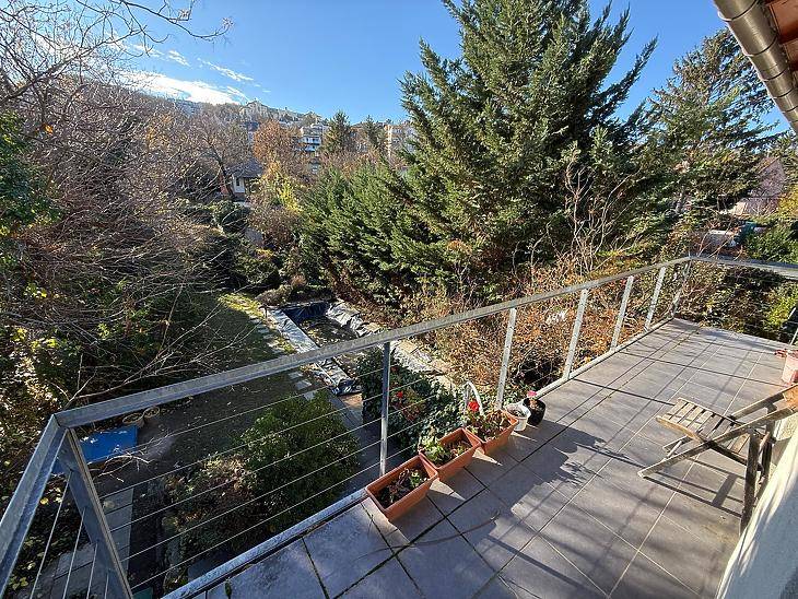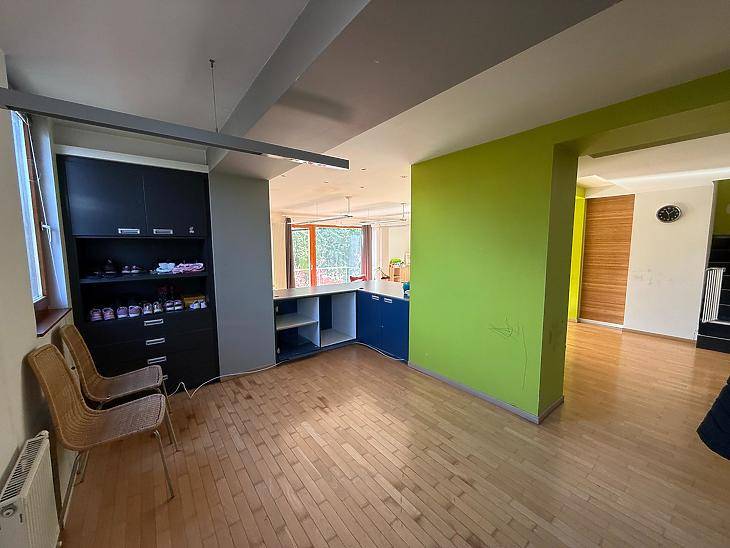 Kizárólag Irodánk kínálatában!Eladásra kínálunk egy csendes, jó állapotú, 159 nm-es + 15 nm-es teraszos, belső kétszintes, világos, panorámás lakást Németvölgy frekventált részén, a Fürj utcában.A szigetelt ház 2 lakásos, 3 szintes, amelyből az eladásra kínált lakás a felső két szinten helyezkedik el. A lakás 6 szobával rendelkezik, amelyből az első emeleten található egy nappali + 2 szoba, a többi szoba a második emeleten helyezkedik el.Az első emeleten található egy 4 nm-es és egy 11 nm-es terasz (utóbbi bővíthető igény szerint), valamint a 2. emeleten két franciaerkély is.Belmagassága 266 cm.A lakás külön bejáraton át megközelíthető a kertből, illetve a garázsból is.Tartozik hozzá egy kétbeállásos garázs, mely 16 nm, valamint egy udvari beálló. Ezeket kötelező megvásárolni, értékük összesen 20M Ft.A ház kertje közös használatú.Elhelyezkedése kiváló: a közelben bevásárlási lehetőségek, iskolák, óvodák, parkok és tömegközlekedési megállók találhatók. A környék ideális mindazoknak, akik a város közelségét, de a zöld, csendes környezetet részesítik előnyben.Kérdés esetén keressen minket bizalommal!Irodánk ingyenes hiteltanácsadással áll ügyfeleink rendelkezésére.Vevőink számára a közvetítés díjmentes.A hirdetésben szereplő adatok tájékoztató jellegűek.