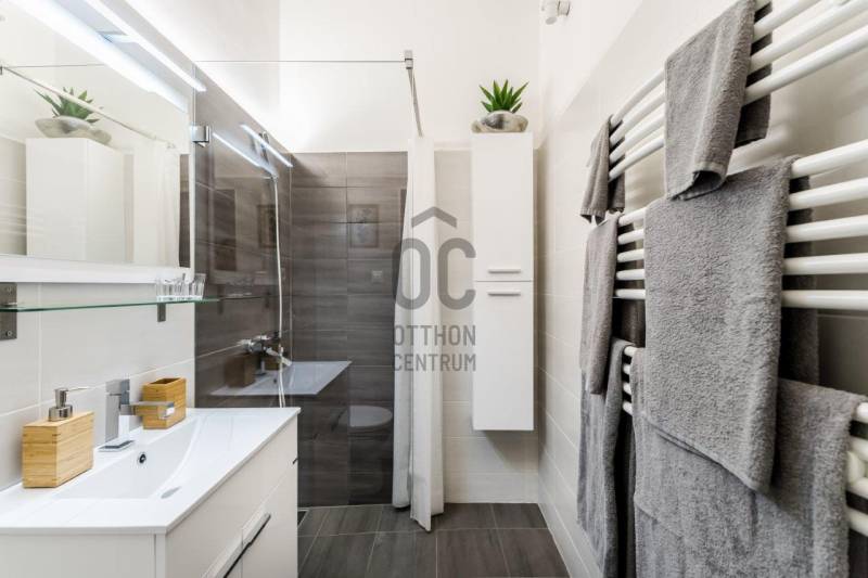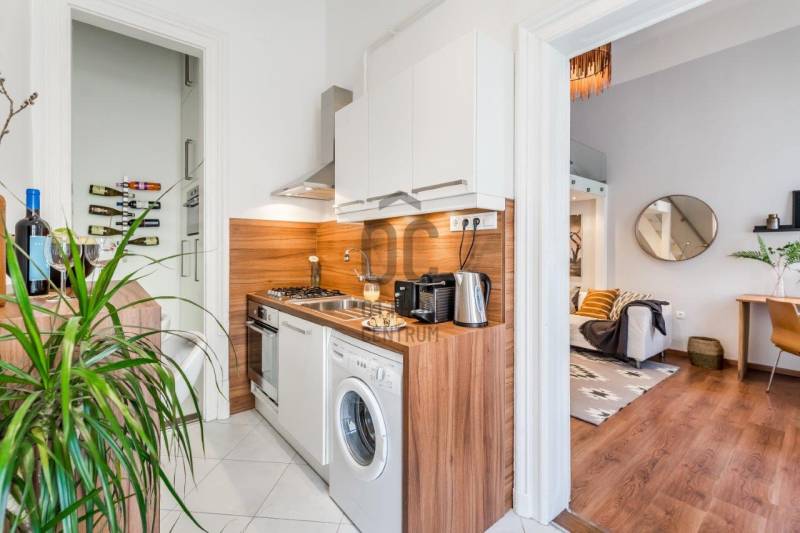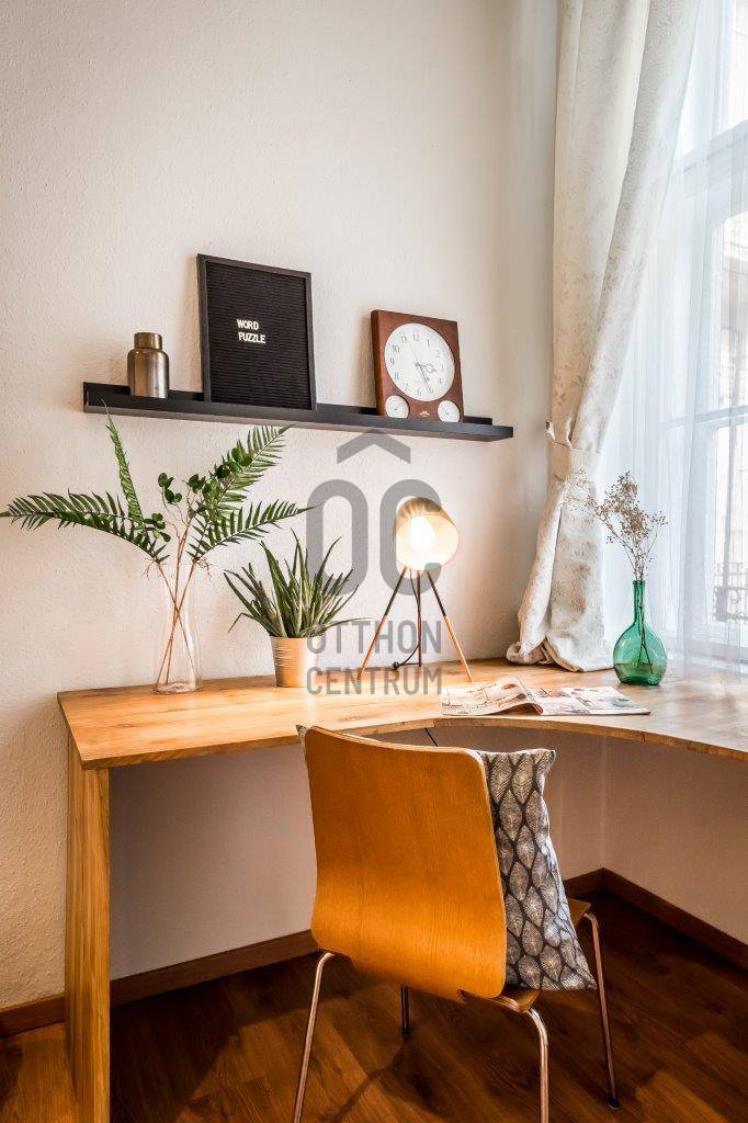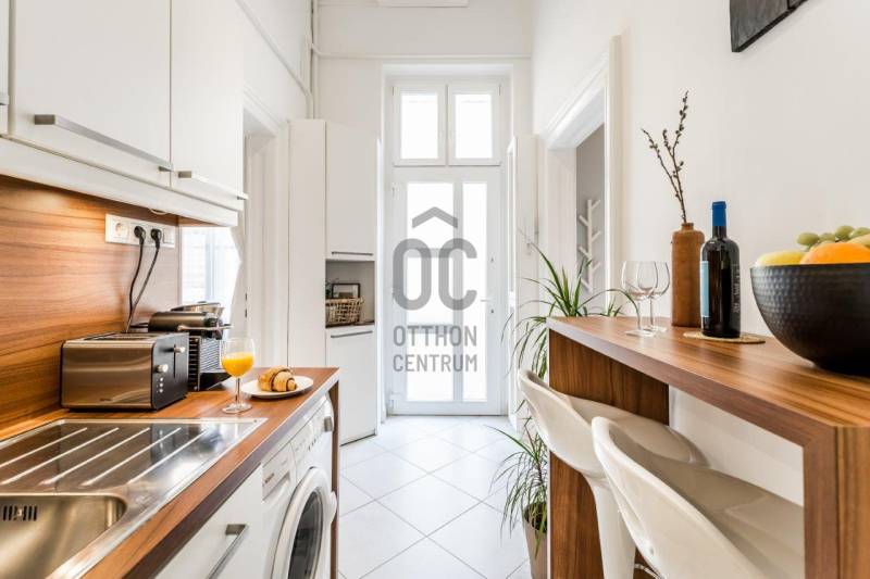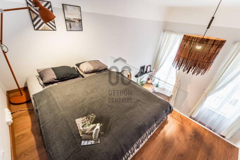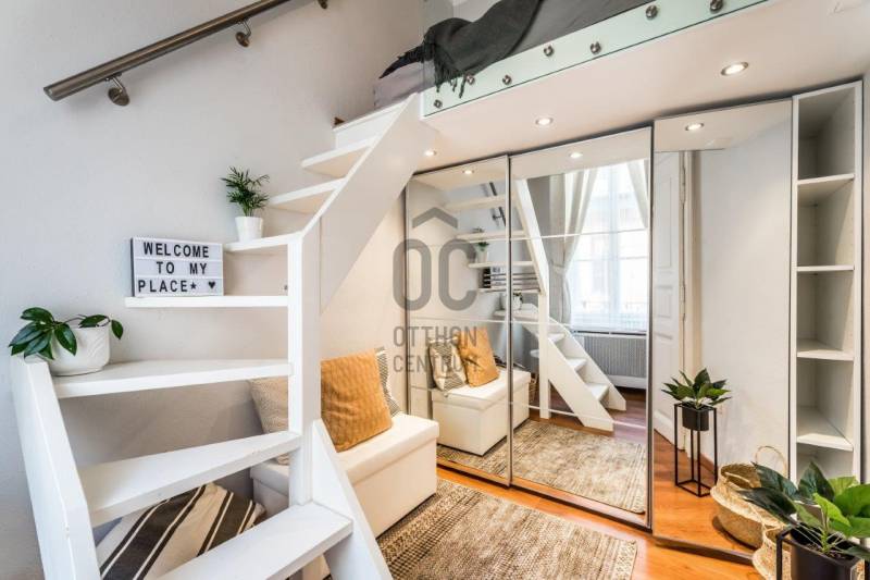 Eladó egy kivételes adottságú, 38 m²-es (galériákkal együtt 48 m²-es), azonnal használható, teljesen berendezett 1. emeleti lakás, amely hosszú éveken át Vendégfavoritként szerepelt az Airbnb-n. A lakás a praktikus, átgondolt kialakítás mellett a kiemelkedő lokáció miatt is keresett: néhány perc sétára található az Oktogon, az 1-es metró és a 4/6-os villamos.A lakás két különnyíló, világos szobával, mindkettőben állógalériával (195 cm), valamint 4 méteres belmagassággal rendelkezik, ami tágas, levegős életteret biztosít. A szobák ablakai csendes, belső udvarra néznek.Helyiségek és felszereltség:Nappali:-kanapé, fotel-dohányzóasztal-íróasztal-galéria: 160×200 cm-es franciaágyHálószoba: -nagyméretű, tükrös beépített gardróbszekrény-galéria: 140×200 cm-es franciaágyKonyha–előszoba:-teljesen felszerelt konyha (edények, evőeszközök, poharak stb.)-gáz főzőlap, sütő, mikró-beépített hűtő fagyasztórekesszel-modern, design konyhabútor-étkező bárasztal 2 székkel-Daikin 3,5 kW-os klímaberendezés-több beépített szekrény és tárolóhelyFürdőszoba:-elegáns, üvegfalas walk-in zuhany-WC, mosdó-praktikus tárolószekrény-elektromos törölközőszárító radiátor-elektromos bojlerMűszaki és kényelmi extrák:-felújított gázkonvektoros fűtés + klímás rásegítés-rezsivédett kategória-4 m²-es emeleti saját tároló-külön zárható pincehelyiség-felújított kapubejáró és gondozott lépcsőházEgyedi igényekre szabott lakáshitelekkel állunk rendelkezésére.Bankfüggetlen Hitelcentrumunk az országban elérhető összes bank és hitelintézet ajánlatát versenyezteti az Ön számára díjmentesen.Munkatársaink nagy szakmai tapasztalattal, teljes körű CSOK PLUSZ és OTTHON START PROGRAM ügyintézéssel várják Önt előre egyeztetett időpontban akár a normál munkaidő után is.