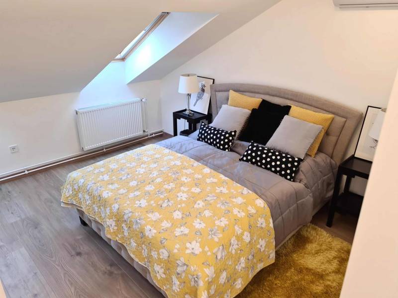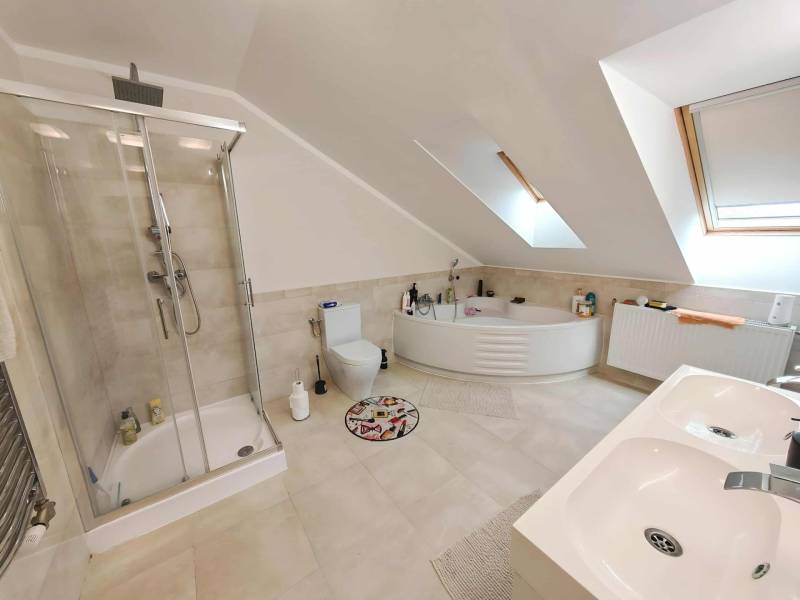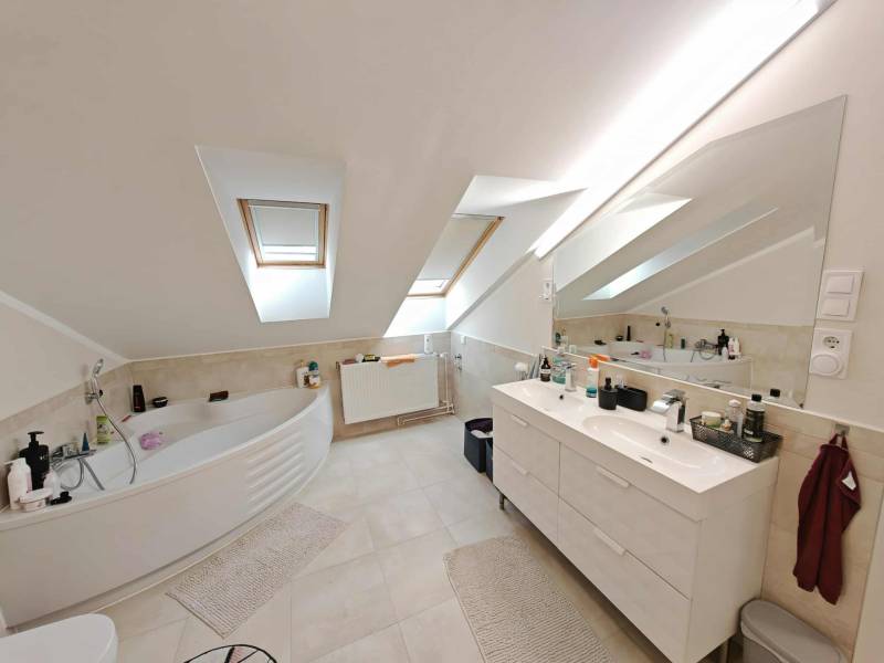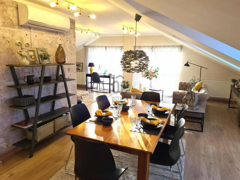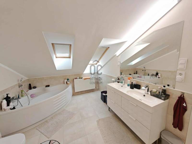 Ajkán, csendes és nyugodt környezetben eladó egy tágas, 103 nm-es tetőtéri lakás – tudatos, fiatal vásárlóknak kiváló választás.Az ingatlan egyedi megoldásokkal és minőségi kivitelezéssel készült, a mindennapi használhatóságot és a praktikus élettereket helyezve fókuszba.2020-ban egy időben, a lépcsőházban megtörtént a víz, villany, fűtés, csatornahálózat cseréje.Főbb jellemzők:- Alapterület: nettó 103 nm, bruttó 147 nm, tetőtéri kialakítás- Elrendezés: 3 hálószoba, 2 fürdőszoba, konyha-nappali, gardrób- Fűtés: távhő egyedi mérés nélkül, automata légtelenítőkkel- Hűtés: 4 db MIDEA klíma, melyek távolról is vezérelhetők- Két helyrajzi számon található az ingatlan (68 nm és 79 nm)- Külön helyrajzi számon, saját, 12 nm-es tároló tartozik a lakáshoz- Finanszírozás: CSOK-ra és egyéb egyedi kedvezményekre alkalmas- Tulajdoni viszonyok: rendezettek, teljesen tehermentesA lakás kiváló elosztású, világos: a három hálószoba és a két fürdőszoba a kényelmes együttélést támogatja, a konyha-nappali funkcionális központot ad a mindennapokhoz.A gardrób rendezett tárolási lehetőséget biztosít, a klíma a nyári komfortot növeli, a távhő pedig megbízható fűtést nyújt.A két külön helyrajzi számú kialakítás különválasztási lehetőséget teremt, ami a használat és a tervezés szempontjából rugalmas megoldás.Fiataloknak, első otthont keresőknek praktikus és méretében is versenyképes alternatíva, ahol a kész műszaki megoldások azonnal élhető tereket kínálnak.Kizárólag Otthon Centrum kínálatában érhető el.Hívjon mielőbb, és szakértői támogatással végig kísérem a biztonságos vásárlási folyamatot!Amennyiben felkeltette érdeklődésedet az ingatlan, kérlek, keress a megadott elérhetőségeken!Irodánk teljes körű HITEL-, BABAVÁRÓ és CSOK ügyintézéssel, biztosítással, energetikai tanúsítvány készítésével, valamint megbízható ügyvédi háttérrel segíti Ügyfeleit.#OtthonCentrum #lakás #ház #eladás #vétel #Veszprém #OC #Ingatlanadásvétel #eladva #Veszprémvármegye #Ingatlanközvetítő #Otthonszakértő #Albérlet #Ingatlaniroda #ingatlanos #szép #realestate #újlakás #újotthon #állás #álláskeresés #panel #panellakas #társasház #munka #instagood #családiház #szépházak #siker #homestaging #eladólakás #otthon #ingatlan #eladóingatlan #munkalehetőség #karrier