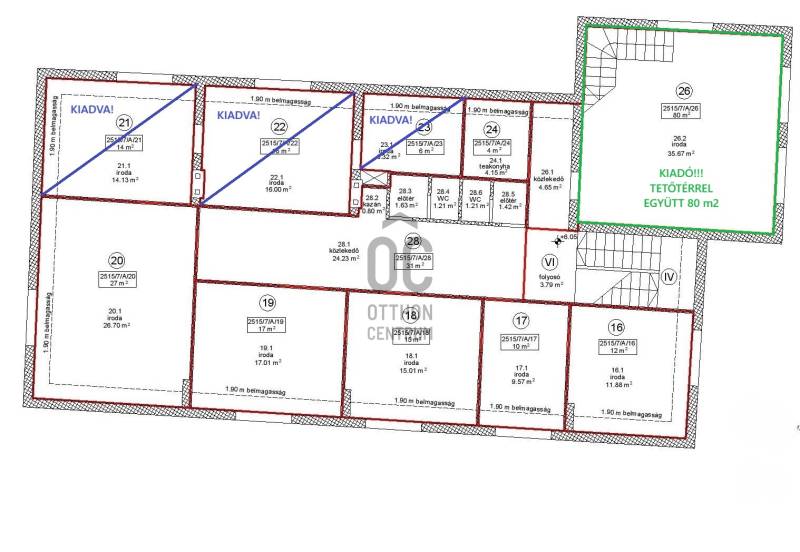 Szekszárd szívében, a Tinódi utcában, frekventált helyen kiadók újszerű állapotú, klimatizált irodák egy korszerű, tégla építésű irodaház második emeletén.Az ingatlan kiváló választás vállalkozások, könyvelők, tanácsadók vagy szolgáltatók számára, akik igényes, belvárosi környezetben keresnek munkahelyet.Főbb jellemzők:- Belvárosi elhelyezkedés, könnyű megközelíthetőség- Korszerű épület, tégla falazat, redőnnyel védett műanyag nyílászárók- Saját gázkazános fűtés, klimatizált (hűtő-fűtő) helyiségek- Modern burkolatok: irodákban laminált parketta, közösségi terekben járólap- Fehérre festett falak, újszerű, tiszta állapot- Közös használatú teakonyha és mosdók a folyosón- Irodák egyenként vagy több helyiség összekapcsolásával is bérelhetők (12, 27, 32, 80 m2)- A hirdetésben található iroda 80 m2 alapterületű, a szintrajzon a 26. számú.- Hosszú távú bérleti lehetőség (minimum 1 év)További információk:- Parkolás a ház előtt, fizetős övezetben- Zárt lépcsőház, kaputelefonos beléptető rendszer- A meghirdetett bérleti díj nettó összeg és nem tartalmazza a rezsit és a közös költséget- A közös használatú helyiségek használati díja szintén a bérlőt terheli, ezt a hirdetési ár tartalmazza- Az irodákat bútorozottan, vagy anélkül is bérelhetiIdeális választás mindazoknak, akik egy rendezett, reprezentatív irodai környezetet keresnek Szekszárd belvárosában!
