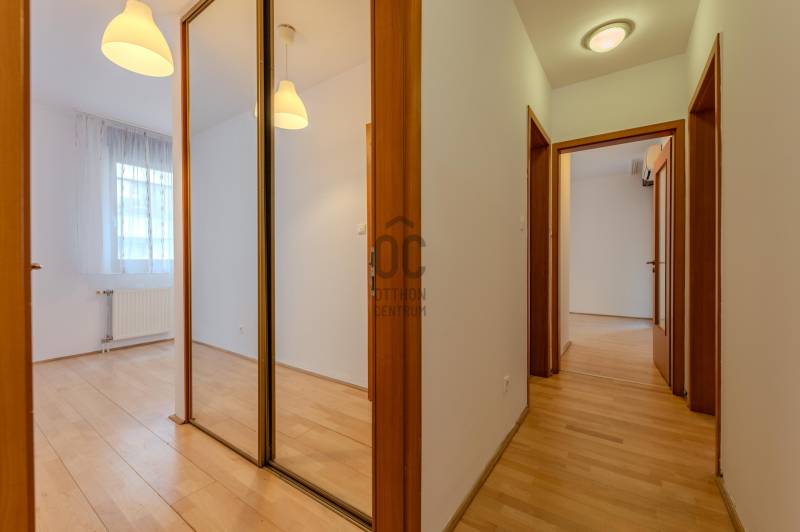Exkluzív Otthon a Díjnyertes \"Római Kert\" Lakóparkban – Újlipótváros Szívében! (1132 Budapest, Visegrádi út 80.)Fedezze fel ezt a kivételes, újszerű (2022) ingatlant Budapest szívében, az Újlipótvárosban, ahol a modern, magas minőségű életstílus találkozik a csendes lakóparki környezet nyugalmával és a kiemelkedő infrastruktúrával!A Lakópark Előnyei és a Prémium KörnyezetA lakás egy 2002-ben átadott, az Autóker által épített \"Római Kert\" lakóparkban található. Ez az épületegyüttes:Többszörös díjnyertes: Kiemelkedő építészeti megoldásai és gyönyörű, gondozott zöldterülete miatt vált elismertté.Zárt és Biztonságos: A lakók kényelmét és biztonságát 24 órás portaszolgálat garantálja.Gondozott, Belső Park: A házak által körbefogott területen egy különlegesen szépen ápolt, díjnyertes közös díszkert biztosítja a nyugodt pihenést, távol a város zajától.Teremgarázs: A kényelmes és biztonságos parkolást a ház teremgarázsa teszi lehetővé (a terem garázshely vásárolható/bérelhető a ház más lakóitól).Lakás JellemzőkEz az I. emeleti, 91 négyzetméteres lakás kiváló állapotú, prémium kivitelezésű, ami a beköltözés utáni felújítási munkálatok aggodalmait teljesen kizárja.Elosztás: Négy tágas szoba, mely ideális választás családok, fiatal párok vagy befektetők számára egyaránt.Konyha: Világos nappali amerikai konyhával, modern dizájnnal és beépített bútorokkal.Kényelem: Két fürdőszoba és kettő összesen 14 négyzetméteres, intim terasz, ahonnan élvezheti a környék panorámáját.Fűtés: Házközponti fűtés egyedi méréssel, ami kedvező fűtési költségeket garantál.Kiemelkedő Újlipótvárosi InfrastruktúraAz Újlipótváros kiemelt lokációja nem csupán kényelmes, de kiemelkedően előnyös a mindennapi élet szempontjából is. A környék ellátottsága és a közlekedés tökéletes:Kultúra és Szabadidő: Sétatávolságra található a RaM – Radnóti Miklós Művelődési Központ, amely színházzal, könyvtárral, étteremmel (VakVarjú) és közösségi programokkal várja az itt lakókat.Oktatás: Bölcsőde, óvoda, iskola könnyen elérhető közelségben 1-2 perc séta.Közlekedés: Kiváló tömegközlekedési csomópontok (pl. 4-6-os villamos, M3 metró, 15-ös busz, trolibuszok) gyors elérést biztosítanak a belváros és a város bármely része felé.Szolgáltatások: Számos bolt, étterem, kávézó, gyógyszertár és a Duna-part közelsége teszi teljessé a kényelmet.A lakás akadálymentesített és biztonsági ajtóval felszerelt, így minden szempontból garantálja a gondtalan és kényelmes otthont.Ne maradjon le erről a páratlan lehetőségről! Tekintse meg személyesen, és tapasztalja meg a \"Római Kert\" lakópark nyújtotta prémium életérzést!