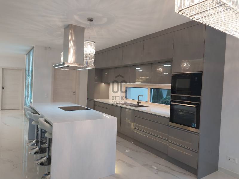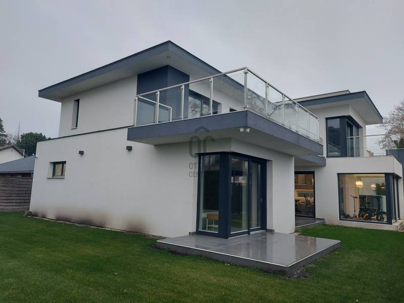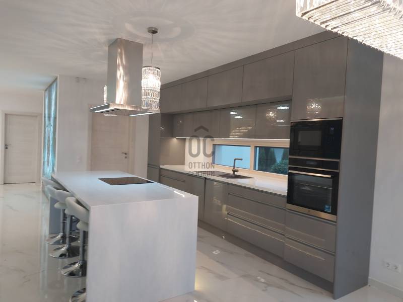 Fektessen be a jövőbe egy egyedi tervezésű, exkluzív vízparti ingatlanba Balatonbogláron, Somogy vármegyében! Ez a kitűnő állapotú, prémium kivitelezésű ház nem csupán otthon, hanem egy életstílus megtestesítője is. Az ingatlan 242 négyzetméteres alapterületén öt tágas szoba és három fürdőszoba található, amely ideális választás lehet családok, vagy akár nyaralásra és vendéglátásra is. A nagy belmagasság és a világos terek egy kellemes, otthonos légkört teremtenek, míg a konyhaszigetes amerikai konyha a modern életstílushoz igazodik. A ház különlegessége a tóra néző kilátás, amely minden reggel egy új élménnyel köszönti Önt. A rendezett kertben található automata öntözőrendszer gondoskodik a zöld területek folyamatos ápolásáról, így Önnek csak élveznie kell a természet közelségét. A biztonsági ajtó és a riasztórendszer garantálja a nyugalmat, míg az okos otthon rendszer lehetővé teszi, hogy a legújabb technológiák segítségével irányítsa otthonát. A környék csendes és biztonságos, ideális választás családok számára, akik a város zajától távol keresnek otthont. Balatonboglár nemcsak a gyönyörű strandjairól, hanem a számos szabadidős lehetőségéről is híres, hiszen a vízi sportok szerelmesei, a természetjárók és a kultúra iránt érdeklődők egyaránt megtalálják itt a számításaikat. A közlekedés is kiváló, hiszen az ingatlan könnyen megközelíthető autóval, valamint a tömegközlekedési lehetőségek is a közelben találhatóak, így a város többi része is könnyedén elérhető. Ez a tehermentes ingatlan nemcsak egy új lakóhely, hanem egy remek befektetési lehetőség is. A passzívház jelleg és a megújuló fűtésrendszer garantálja az alacsony fenntartási költségeket, míg a beépített bútorok és szekrények eleganciát és praktikusságot kölcsönöznek az otthonának. Ne hagyja ki ezt az egyedülálló lehetőséget, és lépjen kapcsolatba velünk bizalommal, ha bármilyen kérdése lenne az ingatlannal kapcsolatban. Az Ön új otthona már csak egy lépésnyire van! Az ár nem tartalmazza a + 27% ÁFÁ-T!!!