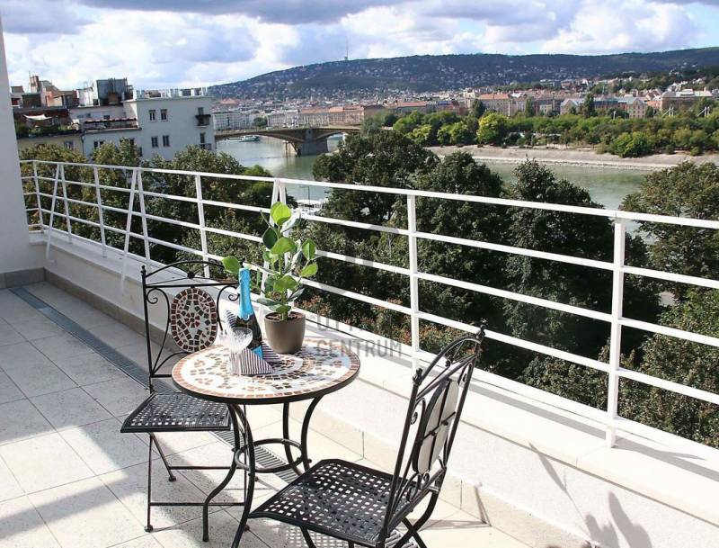 Penthouse a Szent István park felett – Margitsziget-panoráma, 50 m²-es tetőterasz, luxus Újlipótváros szívébenA 110 m²-es, belsőépítész által megálmodott otthon a kifinomult dizájn és a mindennapi kényelem kiegyensúlyozott elegyét kínálja. A lakás szíve az üvegfalú télikert-étkező, ahol télen-nyáron természetes fényben élvezheti a Dunára és a budai hegyekre nyíló kilátást.A tágas belső terek mellett hatalmas privát tetőterasz várja kültéri zuhannyal – ideális hely a város feletti pihenéshez. A lakásban 2 hálószoba, 2 fürdőszoba és egy nagy méretű nappali található, és válogatott prémium bútorokkal berendezett és gépesített. (A bútorok egy része a fotókon még nem látható.)– 110m² lakótér klimatizált üvegfalú télikert-étkezővel, 50m²-es tetőterasszal– Elsőrangú lokáció Újlipótvárosban a Pozsonyi út és a Szent István park mellett – Villamos: 4/6, trolibusz:75, 76, nem messze M3-as Metró, Nyugati Pu.-tol.– Örök panoráma a Szent István Parkra, a Margitszigetre és a budai hegyekre– Lifttel megközelíthető csendes legfelső szint - kerekesszékes használatra alkalmas– Prémium gépesítés, okostévé, okostelefonról vezérelhető klimatizálás és világítás– Távfelügyeletbe kötött riasztó, korszerű nyitás- és füstérzékelés– Parkolás közeli garázsban (bérlet része)– Otthonmenedzsment-asszisztencia (pl. tetőterasz ápolása) a bérlet része – takarítás igény szerintEz az ingatlan több mint lakás – életforma azoknak, akiknek fontos a tetőterasz és a télikert nyújtotta hangulat és a dunai horizont zavartalan látványa.Bérleti feltételekSzerződéskötéskor 2 havi kaució és 1 havi bérleti díj fizetendő.Minimum bérleti idő: 2026 július 31-igNemdohányzó ingatlan; szabadon mozgó kisállat nem hozhatóKözjegyzői okiratba foglalt kiköltözési nyilatkozat