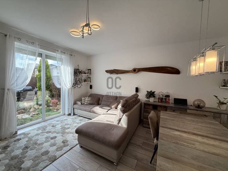 Dunaharaszti csendes, fiatalos kertvárosi részén, a Bezerédi -lakóparkban található ez a kiváló állapotú modern sorházi lakás, amely ideális választás kisebb és nagyobb család számára egyaránt. Az ingatlan alapterülete 142 nm, beosztása nagyon praktikus. Három szintes, benne a nappalin kívül 4 szoba lett kialakítva, lehetőséget adva a családi, baráti együttlétekre és a pihenésre. A földszinten egy gyönyörű, elegáns, tágas konyha, fényárban úszó amerikai konyhás nappali- étkező együttese fogad minket, nagyon helyes kis terasszal, kerttel, grillezővel, igazi vendégmarasztaló hangulattal, valamint az előszobából külön nyíló fürdőszoba WC-vel. Szintén az előszobából nyílik egy ajtó a garázsba, így az autóból kiszállva közvetlenül be tudunk jönni a lakásba, míg egy másik autóval a garázs elé, az előkertbe is beállhatunk. Az alsó szint melegsége, a konyhában lévő sok kis spotlámpa, a LED lámpák, a fények játéka minden napszakban különleges hangulatot varázsolnak. A világos, barátságos és egymástól mégis szeparált hálószobák az emeleten kaptak helyet, a teljes nyugalmat biztosítva. A szülői háló erkély kapcsolatos. Ezen a szinten egy fürdőszoba és egy külön WC is ki lett alakítva. A legfelső szint, a tetőtér szintén be lett építve, itt egy hatalmas szoba, egy gardrób található, mely ideális lehet akár dolgozó, vendég, vagy hobbiszobának , ha esetleg nincs szükség ennyi hálószobára. Két fürdőszoba, összesen három WC biztosítja, hogy a reggeli rohanás során sem kell várakoznia a lakóknak, mindenki számára elegendő az élettér.A ház fűtése a téli hónapokban gázcirkóval megoldott, az alsó szinten padlófűtés, a felső két szinten radiátorok vannak, míg a nyári melegben 2 klíma nyújt felfrissülést. A házba vízlágyító is beszerelésre került, a nyílászárók redőnnyel, szúnyoghálóval felszereltek. A rendezett kis kertjében fűnyírással nem kell bajlódni, de a a sziklakert, a virágágyások mégis tökéletes kikapcsolódást biztosítanak. Az apró, minden évszakban valami szépséget rejtő díszkertben fűszernövények, virágok egyaránt helyet kaptak. A társasház a pár éve átadott Bezerédi Sportpark szomszédságában található, mely Dunaharaszti legnagyobb épített szabadtéri közösségi tere, ahol rengeteg lehetőség várja a sportolni, kikapcsolódni vágyó felnőtteket és gyerekeket . Itt szinte minden megtalálható, egy modern, zárt játszótér, ping-pong asztalok, röplabda/lábtenisz/tollaslabda pálya, streetball pálya, kispályás foci-és kézilabda pálya, közösségi terekkel, padokkal, mosdókkal.Kiváló elhelyezkedésének köszönhetően a környék ellátottsága is kiemelkedő, hiszen a közeli boltok, Lidl, ALDI, Tesco, óvodák, bölcsödék, játszóterek mindössze pár percnyi sétára találhatóak. A Dunaharaszti közlekedési lehetőségei is kedvezőek, Budapest központja gyorsan és egyszerűen megközelíthető autóval, busszal, de a vasúti közlekedés fejlesztése is folyamatban van. A környék biztonságos és csendes, ideális választás gyermekes családok számára, akik értékelik a nyugodt, zöldövezeti környezetet. Amennyiben felkeltette érdeklődését ez a kivételes ingatlan, ne habozzon kapcsolatba lépni velem!