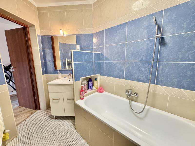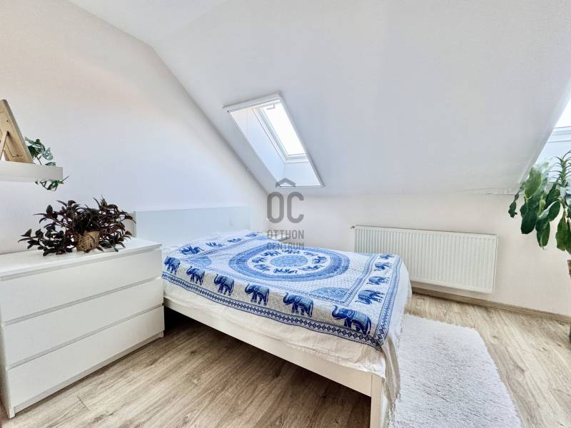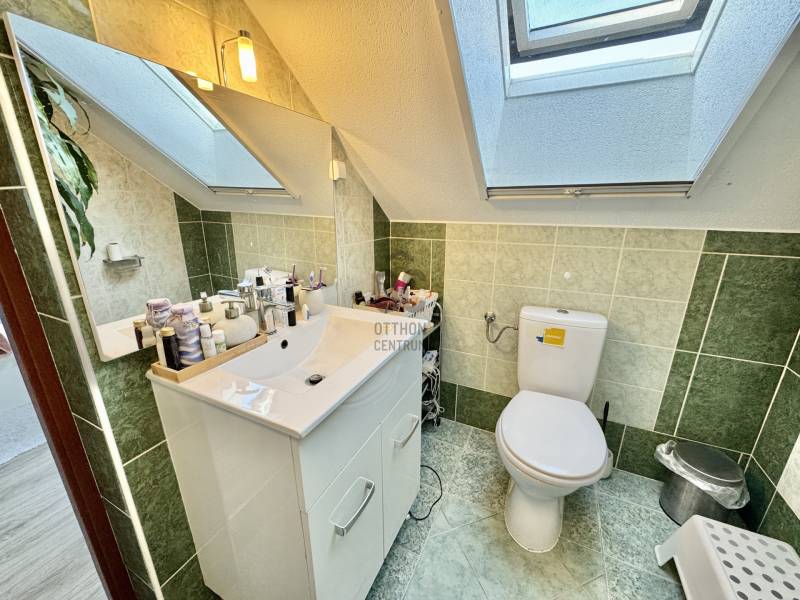 Eladóvá vált Fót, egyik legszebb részén, Királydombon, egy bruttó 110 nm-es, nettó 102 nm-es, 4 szobával+1 nappalival rendelkező, 2 fürdőszobával +1 mellékhelyiséggel, kamrával kiegészített, 200 nm-es telken húzódó, 2 teremgarázshellyel+1 nyitott kerítésen kívüli parkolóhellyel, 3 db tárolóval rendelkező, középső sorházi lakás!Az ingatlan 2011-ben épült, jelenlegi tulajdonosa és családja, 2017 óta lakják. A kert, évszaknak megfelelően, folyamatosan karbantartott, rendezett, kiépített locsoló rendszerrel rendelkezik, de jelenleg ez nincsen használva. A kert végében kialakításra került egy kis fedett sütögetőhely, ami ideális választás lehet családi beszélgetésekhez. Kiemelendő, hogy a kerti szerszámokat nem a lakáson kell keresztül cipelni, mivel a garázs, ami a teljes ház alatt húzódik, átjárást biztosít a kert felé. Számos pakolási, raktározási, tárolási lehetőséggel kiegészítve.A házba belépve, egy ideális méretű előszobába érkezünk, ahonnan egy vendégmosdó nyílik, jelenleg, mosókonyhának van használva, de egy újabb, zuhanyzós fürdőszobát is ki lehet belőle alakítani. Tovább haladván, az amerikaikonyhás-nappaliba érkezünk, ami közvetlen terasz kapcsolattal rendelkezik. A lépcső alatti területet kamraként hasznosítják, így a befőtteknek is van helye, Sok sorházi lakással ellentétben, itt a földszinten is van egy szoba, ami jelenleg dolgozószobának van kialakítva, de akár vendégszobának, hálószobának is használható. Az emeleten, a szülöi hálószoba, saját, zuhanyzós fürdőszobával rendelkezik, valamint a gyerekeknek is kialakítottak egy kádas fürdőszobát. A két másik szoba, közel azonos méretű, közös erkéllyel rendelkeznek. A bútorozást megkönnyítve, egy gardrób is helyet kapott előtérben. A kellemes hőérzetről gázcirkó gondoskodik, továbbá egy-egy db klíma került felszerelésre. A nyílászárók redőnnyel, illetve szúnyoghálóval ellátottak.A környék barátságos, családias, a közelben számos bevásárlási lehetőség, iskola, óvoda, bölcsőde, orvosi rendelő található, továbbá buszmegálló, vasútállomás 10 perc alatt elérhető.Ajánlanám ezt az ingatlant olyanoknak, akik nem szeretnének nagyobb felújítással foglalkozni, valamint Fót egyik legszebb, családias részén élnének, valamint olyanoknak, akik nem szeretnének órákat utazni a munkahelyükre.A ház megvásárlásához a megfelelő önerővel „már rendelkező”, de ezenfelül akár ***banki hitelfelvétellel, akár *** CSOK+ , akár ***lakáskassza megtakarítással és akár a ***babaváró program keretében felvehető / felhasználható pénzösszegből vásárló személyek megkeresését is szeretettel várom!Ha a leírtak és a látottak alapján felkeltettem az érdeklődését, keressen bizalommal akár hétvégén is!***Az igénylési / felhasználási feltételekkel kapcsolatban, valamint ezek ügyintézésben is, az Otthon Centrum hitelközvetítő munkatársával együtt, készséggel állok az Ön szíves rendelkezésére!