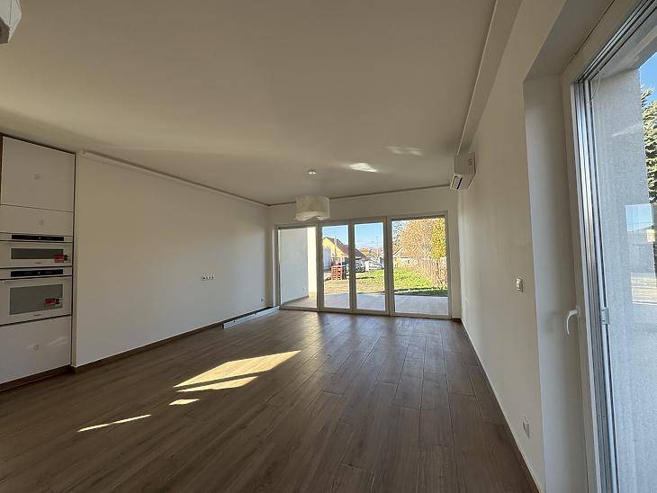 Dunakeszi egyik legcsendesebb, kertvárosi utcájában eladó egy 155 m²-es, ÚJ ÉPÍTÉSŰ, kétszintes, nappali + 3 szobás, önálló családi ház!Az ingatlan átmenő forgalomtól mentes környezetben helyezkedik el, ahol a modern építészet és a praktikus, kényelmes otthonérzet találkozik.Főbb jellemzők• Telek: 726 m²• Lakótér: 155 m², modern elosztással, két szinten• Helyiségek: nappali + 3 hálószoba, 2 fürdőszoba, mosókonyha, gardrób• Saját garázs az épületben• Fedett terasz a földszinten és az emeleten isMűszaki tartalom• Korszerű, hőszivattyús hűtő-fűtő rendszer• Padlófűtés és mennyezethűtés a maximális komfortért• Kiegészítő klímaberendezés• Prémium minőségű nyílászárók• Modern, energiahatékony szigetelés• Kulcsrakész átadás, beépített konyhabútorral