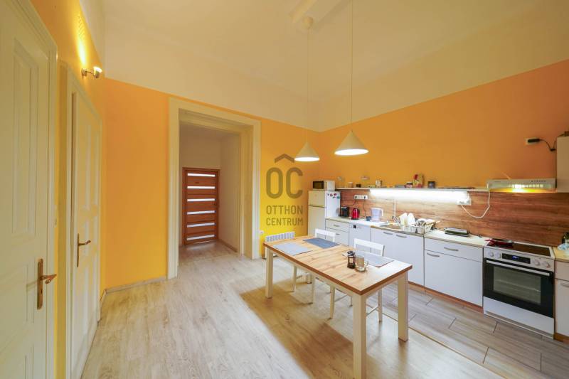 A körúthoz közel, mégis csendes, hangulatos utcában található ez a 63 m²-es, első emeleti otthon, amelyet két éve teljes körűen és igényesen felújítottak. A klasszikus épület rendezett lépcsőházából léphetünk be a lakásba, amely a modern kényelem és az egyszerűség tökéletes ötvözete.A tágas, étkező-konyháa a lakás központja lehet, amely nyugati tájolásának köszönhetően egész nap világos és barátságos hangulatú. Innen nyílik a fürdőszoba, a külön WC, valamint egy praktikus mosókonyha. A két keleti fekvésű hálószoba a csendes, rendezett utcára néz, biztosítva a nyugodt pihenést.A lakás nagy belmagasságú (390cm), levegős terekkel és elegáns burkolatokkal rendelkezik. Teljesen berendezve eladó, a konyhai gépek garanciálisak, a fűtés modern elektromos panelekkel, a melegvíz energiatakarékos bojlerrel megoldott. A pincében egy 6 m²-es tárolóhelyiség is tartozik hozzá.A társasház és az udvar rendezett, a lakóközösség barátságos. A környék dinamikusan fejlődik – az utcában két új szálloda épül, a közelben park, üzletek és számos szolgáltatás található.Kiváló választás mind saját otthonnak, mind befektetésnek!