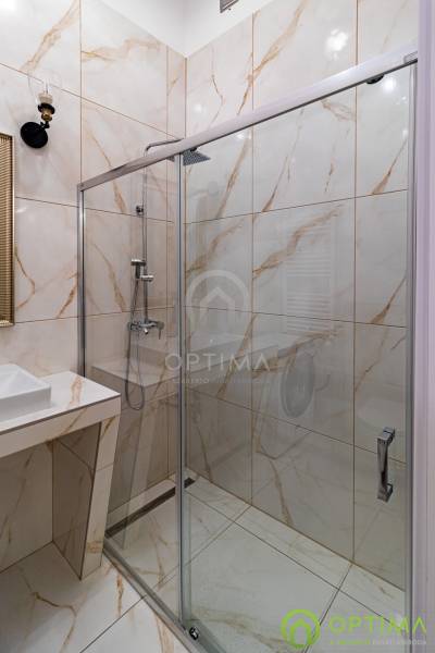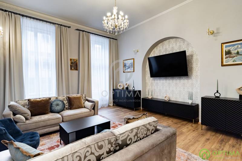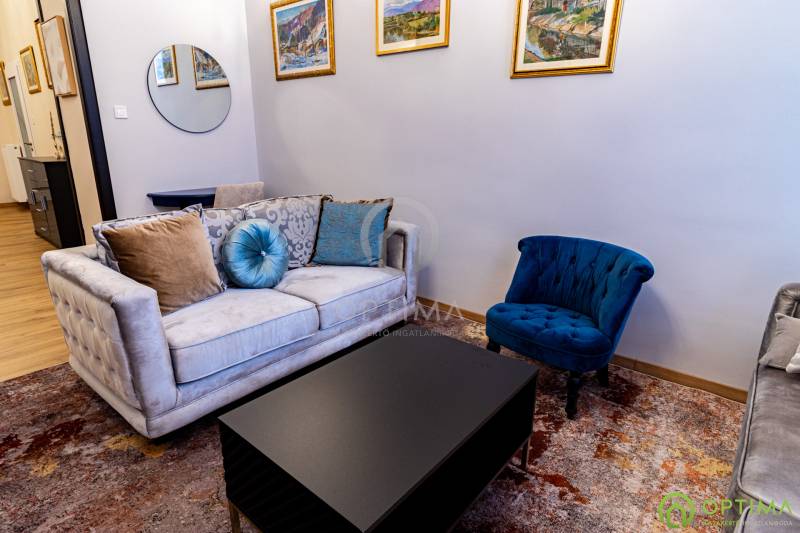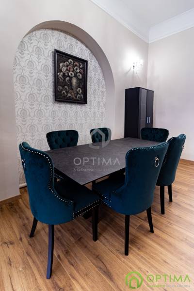 TELJESKÖRŰEN FELÚJÍTOTT, 2 SZOBÁS LAKÁS A PALOTANEGYEDBEN Budapest VIII. kerületének legkeresettebb városrészében, a Palotanegyedben, a Szentkirályi utcában kínálom megvételre ezt a 95 m2 alapterületű, I. emeleti, 2 szobás téglalakást. A ház külső és belső homlokzata is kiváló állapotban van. A lakás egy külön zárt folyosóról közelíthető meg, így csak 1 közvetlen szomszéd van. A lakás TELJES KÖRŰ felújításon esett át ebben az évben: - cserére kerültek a vezetékek (villany-, gáz- és vízvezetékek egyaránt), - beépítésre kerültek új hang- és hőszigetelő műanyag ablakok, - cserére kerületek a burkolatok a konyhában és a fürdőben egyaránt, - beépítésre került egy gépesített konyhabútor,- kialakításra került a cirkó fűtés, - beépítésre került légkondicionáló. A közös költség összege havonta 29.000 Ft, amely tartalmazza a szokásos tételeket, mint a LIFT használatot, a szemét elszállítását, a lépcsőház tisztántartását. A közüzemi fogyasztások mind egyedi mérőórák alapján kerülnek elszámolásra. A KÉPEKEN LÁTHATÓ BÚTOROK ÉS BERENDEZÉSI TÁRGYAK A VÉTELÁR RÉSZÉT KÉPEZIK. Az ingatlan BELVÁROSI elhelyezkedésének köszönhetően BEFEKTETÉSI céllal való vásárlása is kitűnő választás lehet. A lakás megtekintése miatt VÁROM HÍVÁSÁT akár hétvégén vagy az esti órákban egyaránt!