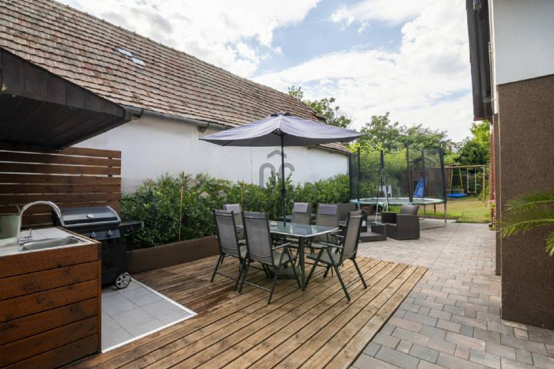 Eladó Törökbálinton egy két szintes családi ház csendes kertvárosi mégis központi részenTörökbálint a Budai agglomeráció egyik legkedveltebb települése, egy gyönyörű sváb település rengeteg helyi történettel, emlékművekkel, színházzal, rendezvényekkel, sportközponttal, uszodával, számos iskolával és óvodával.INGATLAN LEÍRÁSAA telken található egy két szintes nettó 147 nm-es családi ház, ami jelenleg két lakásra van osztva, (de könnyedén összenyitható) illetve egy külön álló nettó 21 nm-es kis ház.A három lakóegység összesen nettó 168 nm (bruttó 230 nm) lakóterületű, mind a három lakás az utcáról külön kapun keresztül közelíthető meg.A földszinti lakás:Nettó 57 nm lakóterületű lakás, 15 nm terasszal.Elrendezése: nagyméretű nappali, konyha sarokkal , 2 kis méretű szoba , zuhanyzós fürdőszoba wc-vel.Az emeleti lakás:Ehhez a lakáshoz tartozik egy udvari gépkocsi beálló, saját kert rész és terasz.A kertből egy kis téli kerten keresztül jutunk el az előszobába, a földszinti részen található még egy tároló.Az emelet elrendezése: nappali - konyha - étkező , 3 szoba, fürdőszoba zuhanyzóval és káddal + wc-vel , külön wc.Külön kis ház:Nettó 21 nm, nappali - konyha, zuhanyzós fürdőszoba wc-vel + galléria, kis terasszal.A ház 1996-ban nyerte el jelenlegi formáját, amikor egy teljes felújításon esett át, amelynek során kibővítették a földszinti részt és egy plusz emeletet építettek rá. Az épületben sok éven át étterem és különböző üzlethelyiségek működtek. 2018-ban teljes belső átalakítást végeztek, amelynek eredményeként három lakást alakítottak ki. Két éve a külső homlokzatot újra szigetelték és vakolták.TÖRÖKBÁLINTMa Törökbálint olyan város, amely egyrészről megtartotta falusias jellegét, másrészről pedig lakosságának kvalifikáltsága, az itt élő emberek \"Bálintszeretete\", a különböző közösségek alkotóereje, az itt működő vállalkozások sikere méltó helyet vívott ki magának Magyarországon, Budapest szomszédságában.A közelben minden megtalálható, ami a mindennapi élethez szükséges: boltok, gyógyszertár, óvoda, iskola, posta, cukrászda, buszmegálló 5 percen belül elérhető akár gyalogosan is.A közlekedés kiváló, autóval néhány perc alatt elérhető az M0, M1 és M7 autópálya, illetve tömegközlekedéssel is 20 perc alatt elérhető a Kelenföldi pályaudvar.Kiváló elhelyezkedése és zöldövezeti környezete miatt, meglátja és rögtön beleszeret.Amennyiben felkeltette érdeklődését a hirdetés, várom hívását.