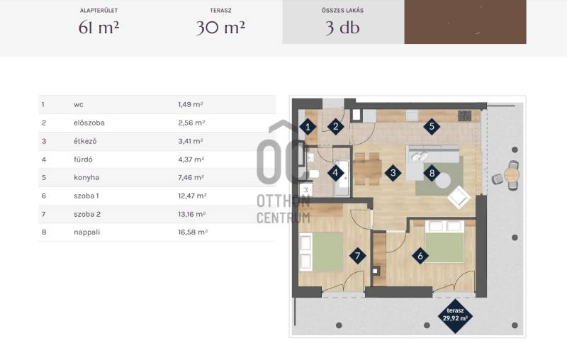 Projekt bemutatásaFontos: Az árak magasszintű kulcsrakész kivitelezést tartalmaznak, szemben a Balatonfüreden alkalmazott emelt szerkezetkész kivitelezéssel szemben!Szerkezet kész kivitelezés választása esetén kérjen egyedi árat!A terület a patak és a Fürdő utca között húzódik, melyek ezt keletről valamint nyugatról határolják. A nyugati teleksáv az urbánus szövetbe épül (amely szervesen köti a Balaton körüli történésekhez), míg a patak közelsége (és a hozzá tartozó fauna) egy intim, egyedi hangulatot kölcsönöz a nyugati telekrészletnek.Kényelem és luxus- hatalmas zöldfelületek- zárt szabadidőpark- gyerek és felnőtt medence- kültéri szaunaház- játszóterek- sétányok- zárt mélygarázsokFedezd fel ezt az exkluzív, új lakást Balatonfüreden, amely ideális választás családosok számára! I ütemben 4 tömböl értékesítjük a lakásokat, szerződés kötés megkezdődött20 db 75 m2 lakás 38 m2 terasszal 1.750.000 FT bevezető áron25 db 98-105 m2 lakás 46,5 m2 terasszal 10 db penthouse lakás 175 m2 85 m2 terasszalII ütemben előjegyezhető lakások7 db 42 m2 lakás 26 m2 terasszal7 db 61 m2 lakás 30 m2 terasszalÜzletekA lakásokban, hőszivattyús fűtés biztosítja a kellemes meleget télen, nyáron a hűtést, tágas a teraszok és a közeli medencés társasház területe ideális helyszín a pihenésre. A lakópark, ahol a lakás található, nemcsak modern, hanem biztonságos és csendes környezetet is kínál, amely tökéletes a gyerekek számára. A gyönyörű zöldövezeti környezet és a barátságos szomszédság garantálja, hogy otthonod valóban a családod középpontja legyen. Az okos otthon rendszer lehetővé teszi, hogy könnyedén irányítsd lakásod különböző funkcióit, így még kényelmesebbé téve mindennapjaidat. A környék kiváló közlekedési lehetőségekkel rendelkezik, hiszen a helyi tömegközlekedés gyors és kényelmes eljutást biztosít Balatonfüred központjába, ahol számos bolt, étterem és szórakozási lehetőség vár rád. Az autós közlekedés is egyszerű, hiszen a közeli főutak gyorsan elérhetők, így könnyedén felfedezheted a Balaton körüli gyönyörű tájat és a környező településeket. Balatonfüred nemcsak a vízparti élményekről híres, hanem kulturális programjairól és rendezvényeiről is. A városban található gyönyörű sétányok, parkok és a híres Tagore sétány mind hozzájárulnak a hely varázsához. A családok számára ideális környezetet biztosít, hiszen a közelben iskolák, óvodák és sportolási lehetőségek is találhatók. Ez a lakás nem csupán egy ingatlan, hanem egy életstílus, amely a Balaton közelségét és a kertvárosi nyugalmat ötvözi. Ha bármilyen kérdésed van, vagy szeretnéd megtekinteni ezt a csodás otthont, bátran keresd fel a megadott elérhetőségeket! Ne hagyd ki ezt a páratlan lehetőséget, hogy családod számára egy igazán különleges helyet találj!